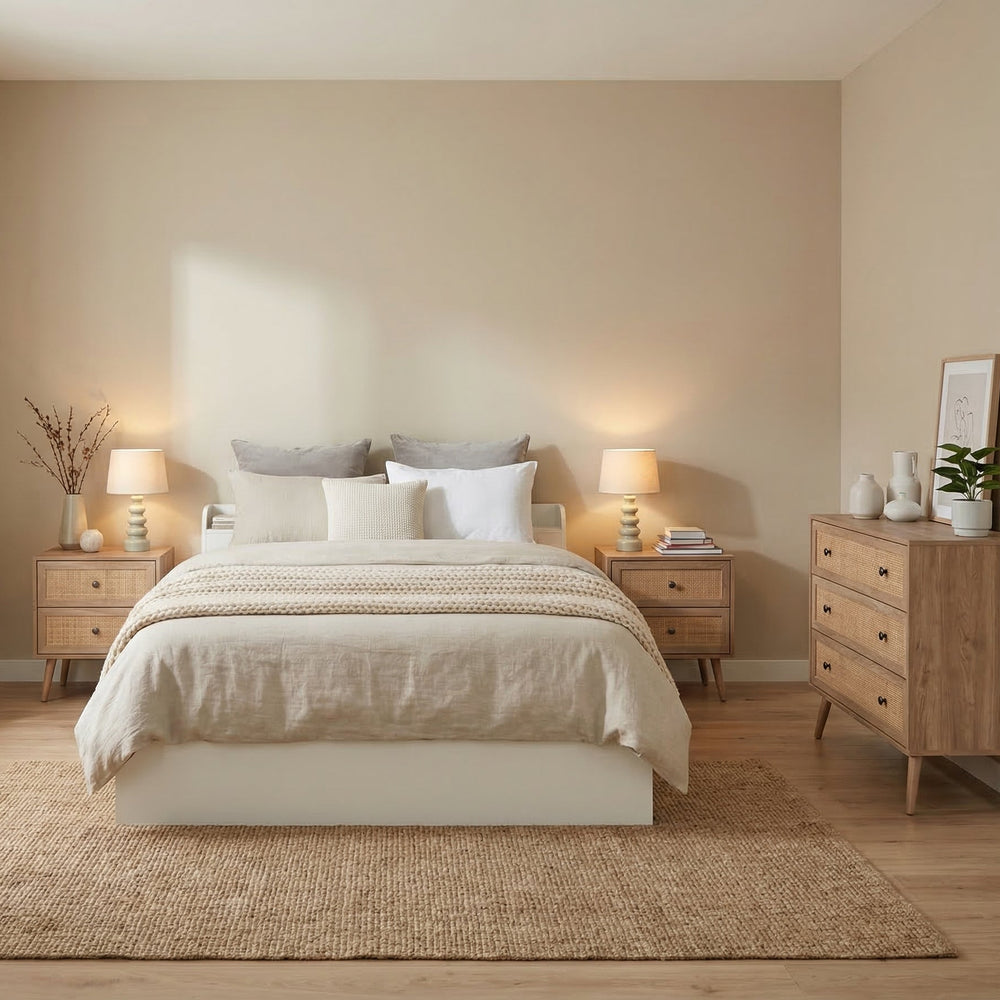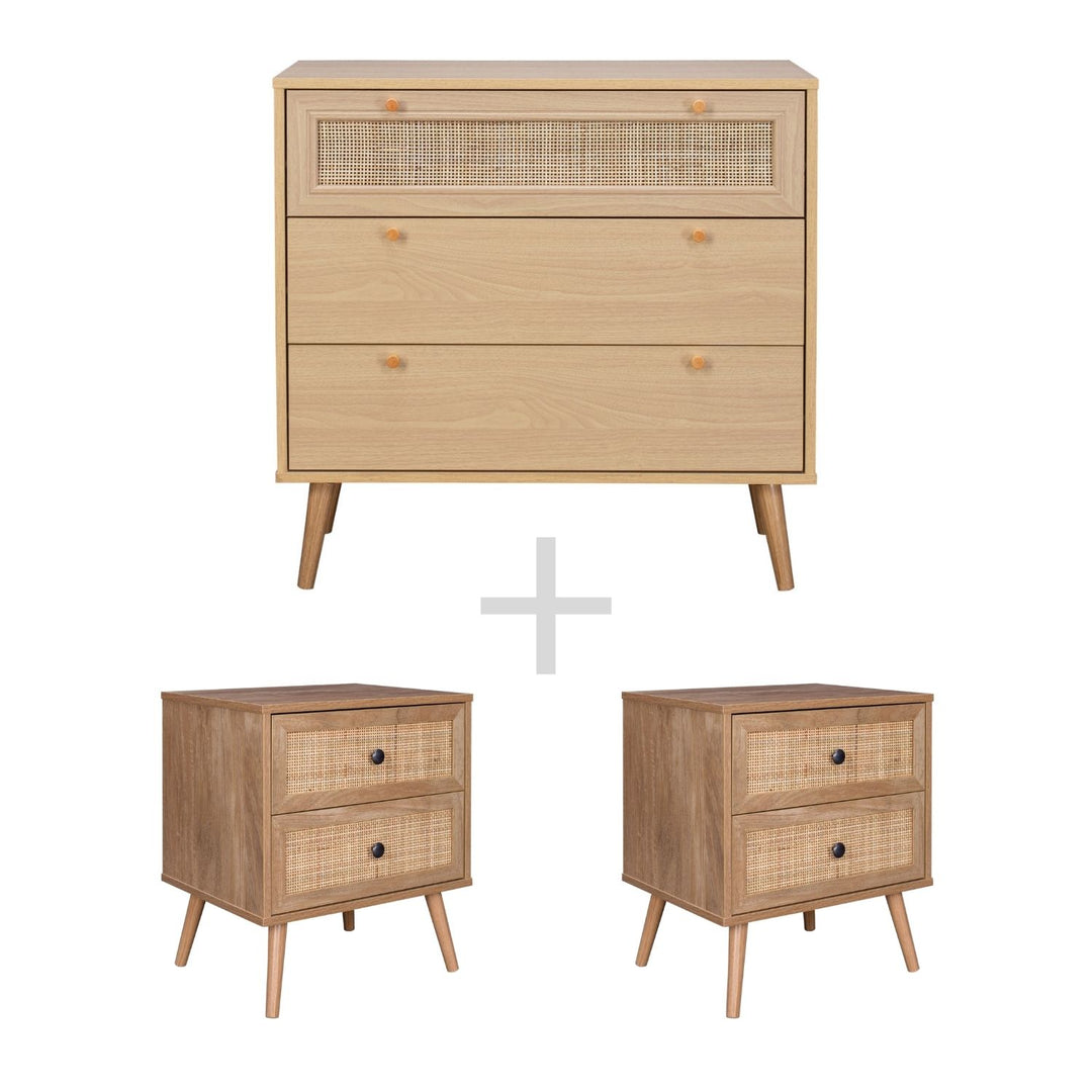 Combo Recámara Ratán : 2 Burós Bacoor + Cómoda Panabo