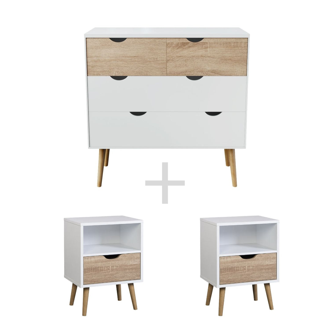 Combo Recámara Nórdica: 2 Burós + Cómoda
