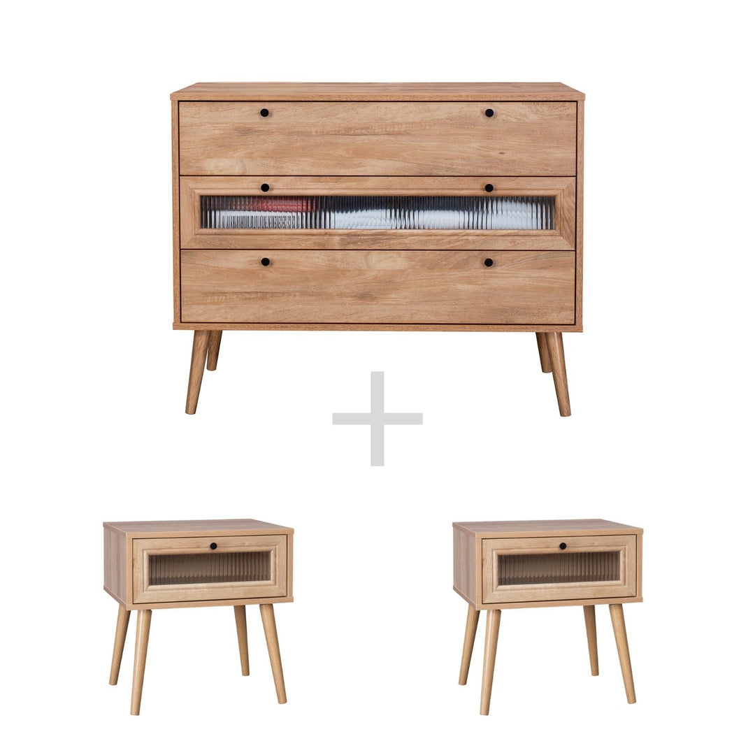 Combo Recámara Ratán : 2 Burós Bacoor + Cómoda Calcuta