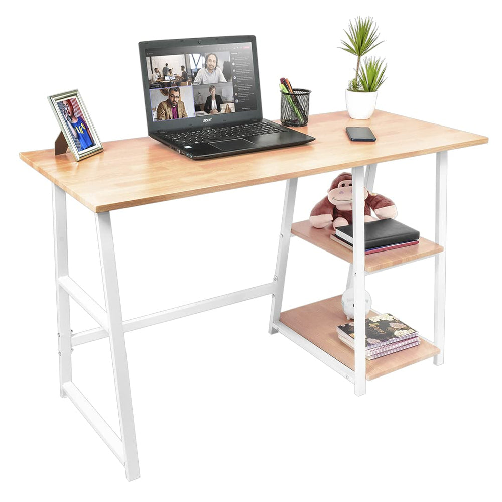 Escritorio Pino-B con Entrepaños Laterales Café Claro
