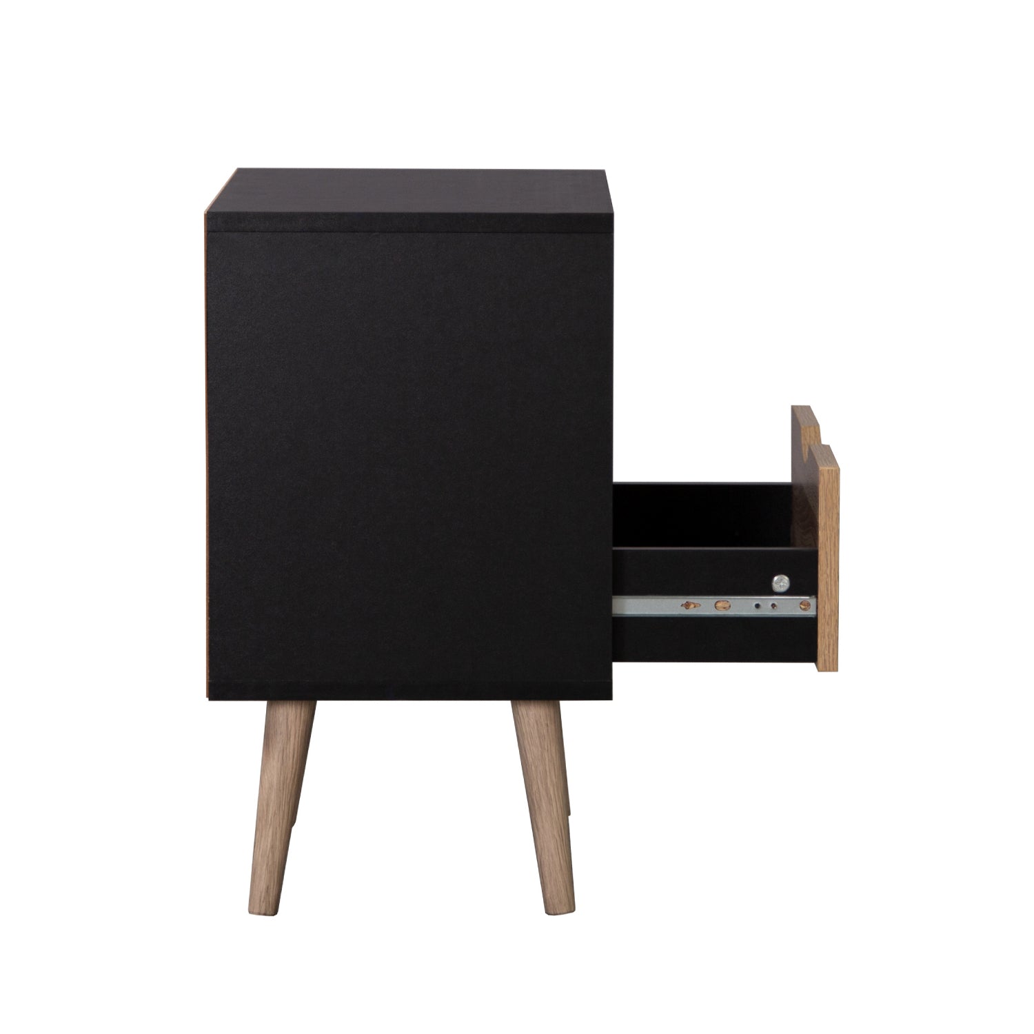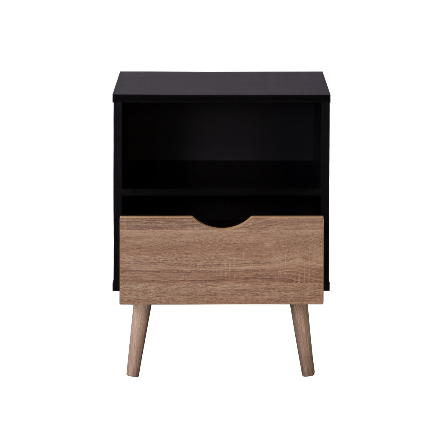 Disfruta de este moderno buró estilo nórdico en tonos madera clara y negro en tu hogar. Gracias a su diseño minimalista y versátil podrás utilizarlo como mesa de noche para tu recámara o como mesa auxiliar en tu sala. Suma diseño a tu hogar y dale un toque cálido a tus espacios con este práctico buró.