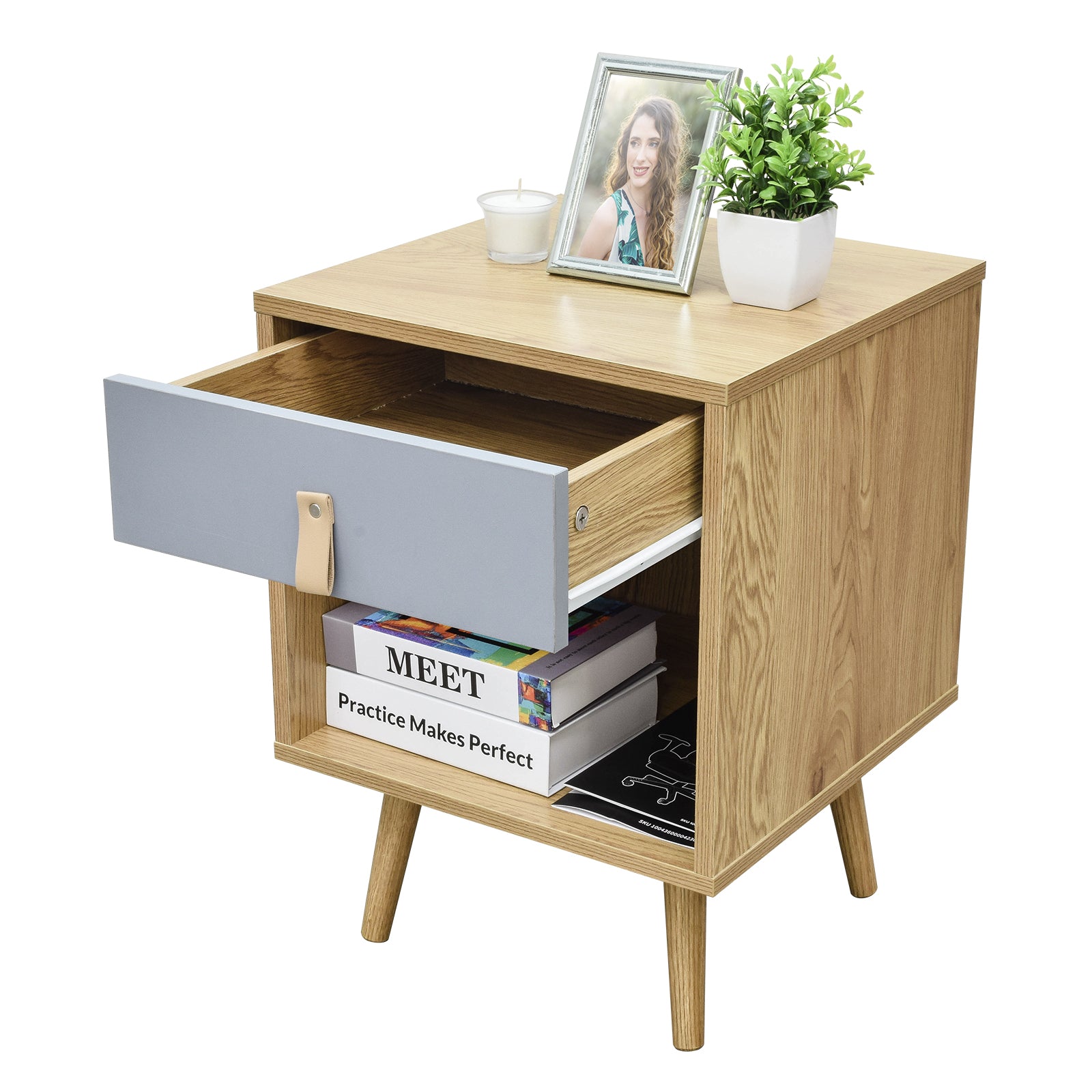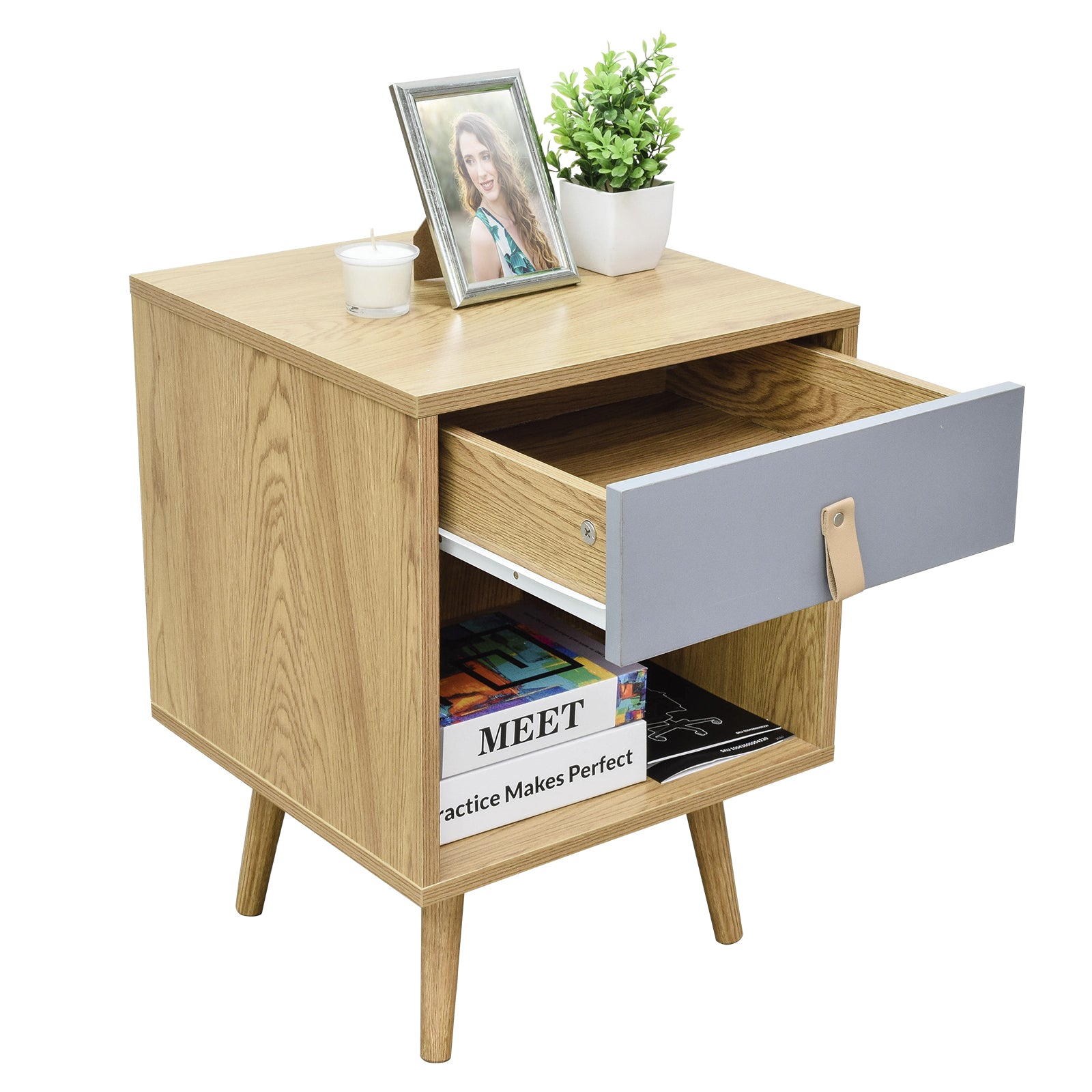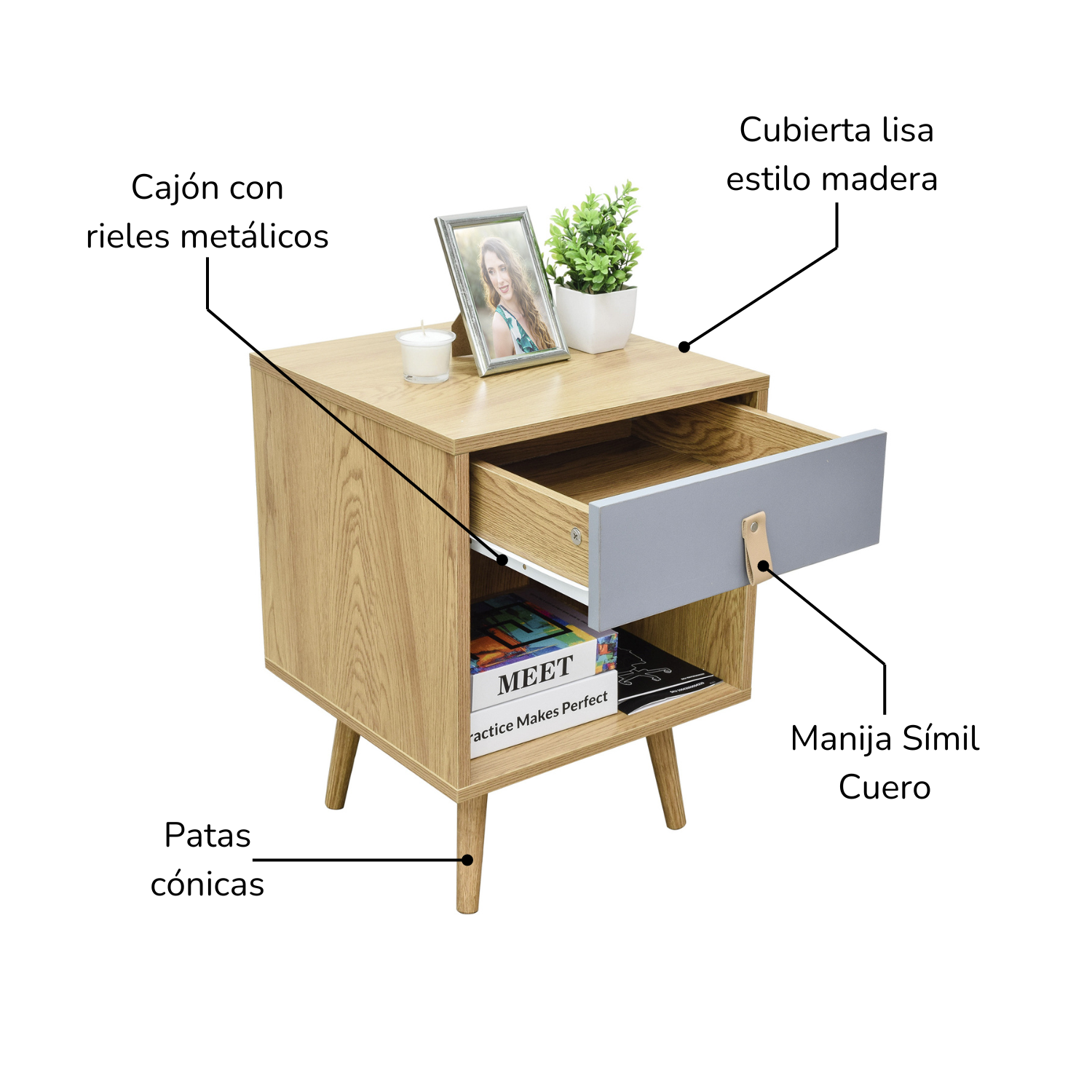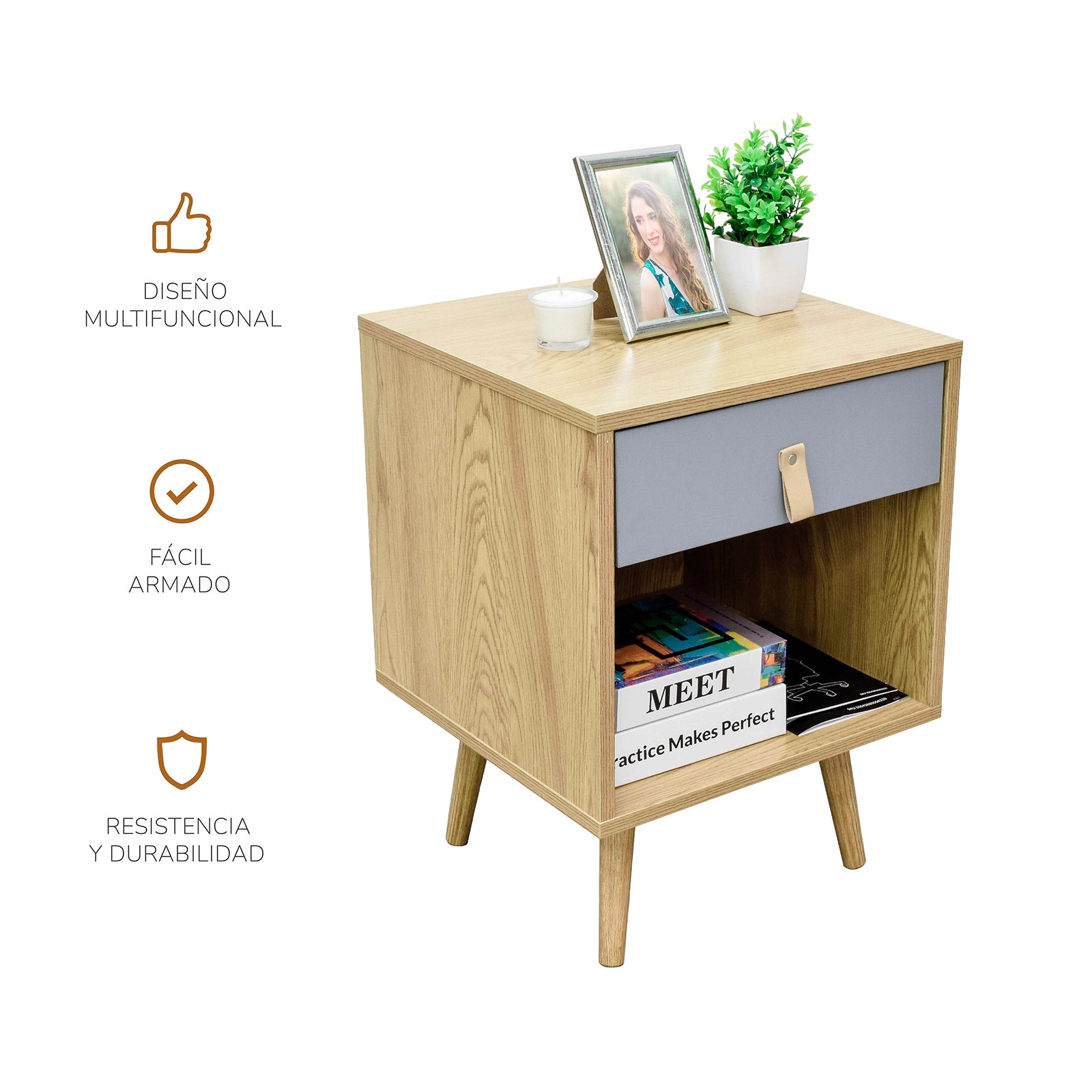 - Cuenta con un cajón y un amplio entrepaño, ideal para quienes desean mantener sus espacios visiblemente ordenados.