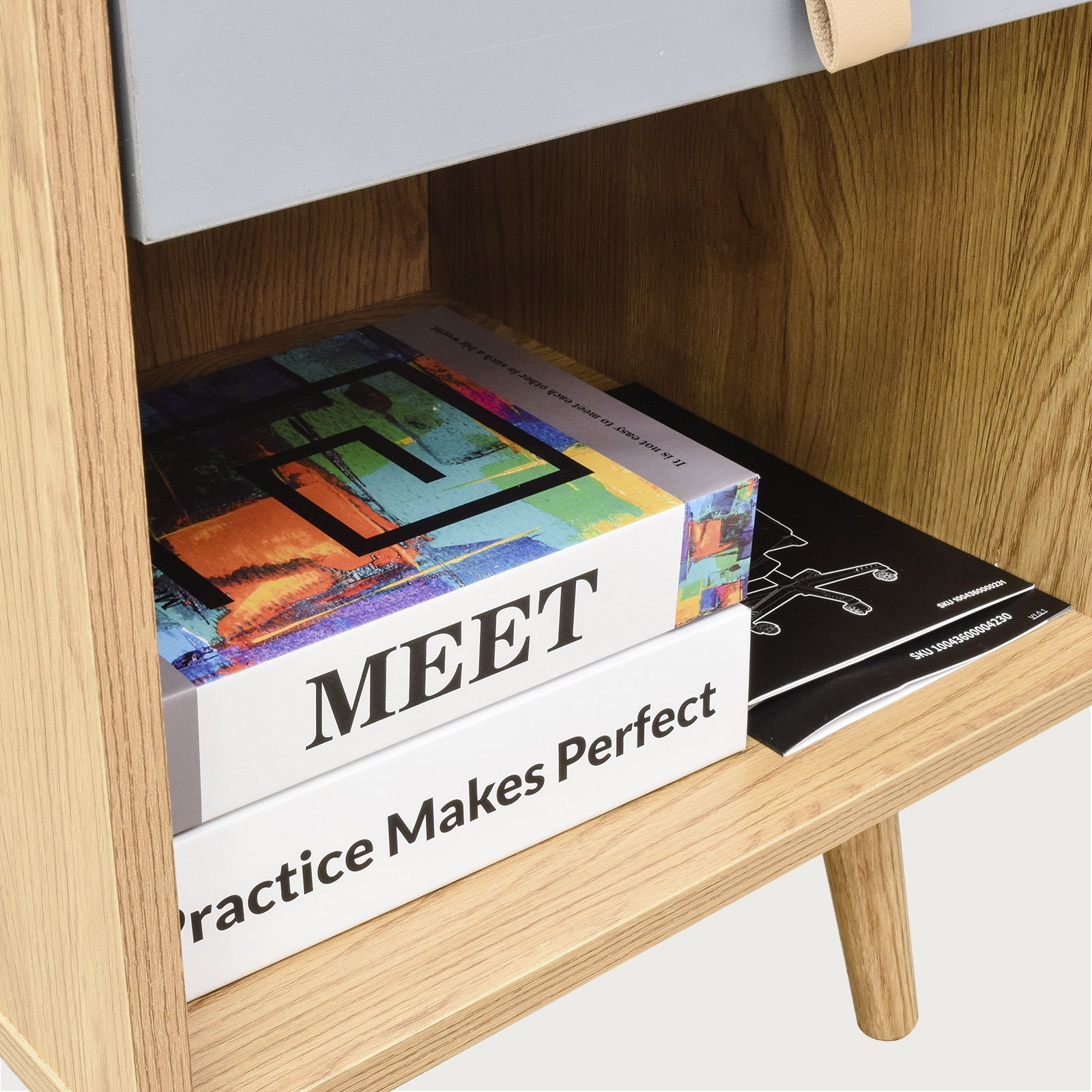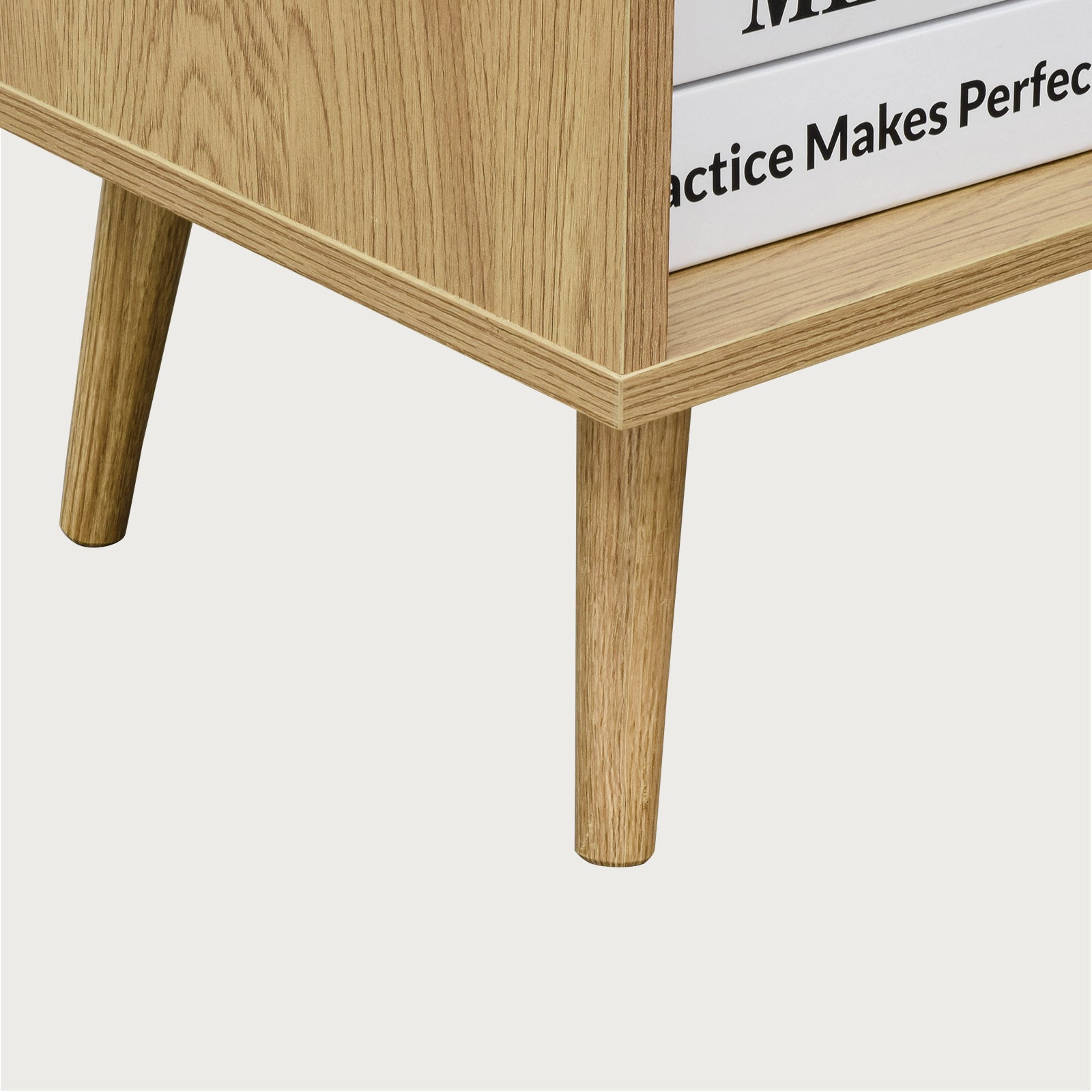 - Elaborado con tablero de partículas con papel y patas de madera maciza, materiales resistentes y duraderos.