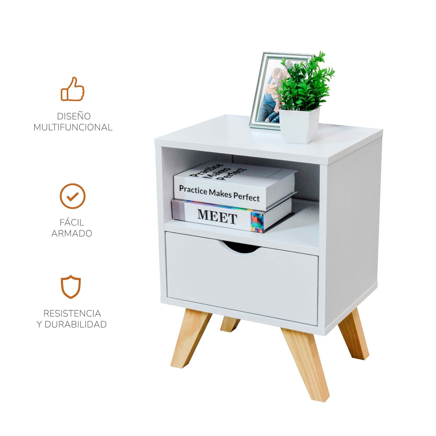 Disfruta de este moderno buró en tonos blanco y beige. Suma diseño a tu hogar y dale un toque diferente a tus espacios. Perfecto para complementar con tu recamara y así poder tener tus objetos personales en orden y al alcance de tu mano.