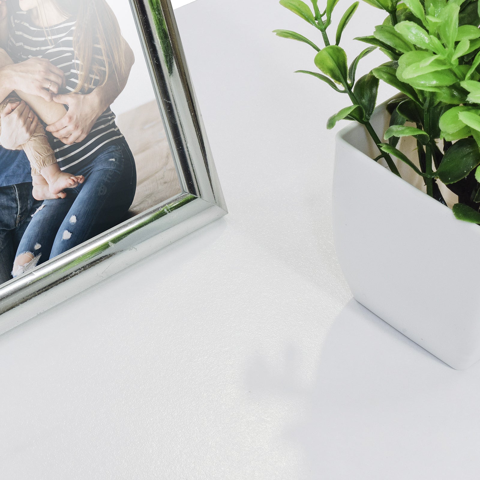 - Cuenta con una superficie suave y lisa de tablero de aglomerado color blanco y patas de madera maciza resistentes.