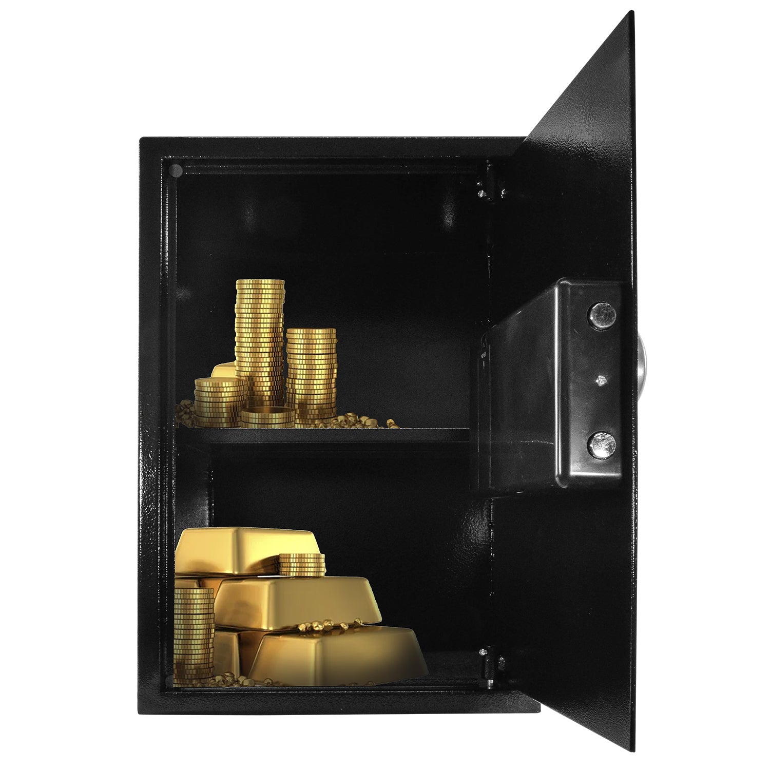 Proteja sus objetos dinero y objetos de valor con esta caja de fuerte de Halten. Es resistente y segura, ya que tanto el cuerpo como la puerta están fabricada de acero. La convierte en una caja compacta y resistente para almacenar tus pertenencias. Es adecuada para colocarla en tu negocio, oficina u hogar. Ya que permite que el contenido este resguardado y seguro. El diseño de esta caja de almacenamiento de dinero y objetos personales es de forma rectangular y vertical con colores gris y negra y con un peso de 14 Kg. La caja de almacenamiento se puede montar en el suelo o en la pared, incluyendo los herrajes. Puede ser utilizada en su hogar, negocio u oficina. Almacena sus objetos personales de forma segura y conveniente.