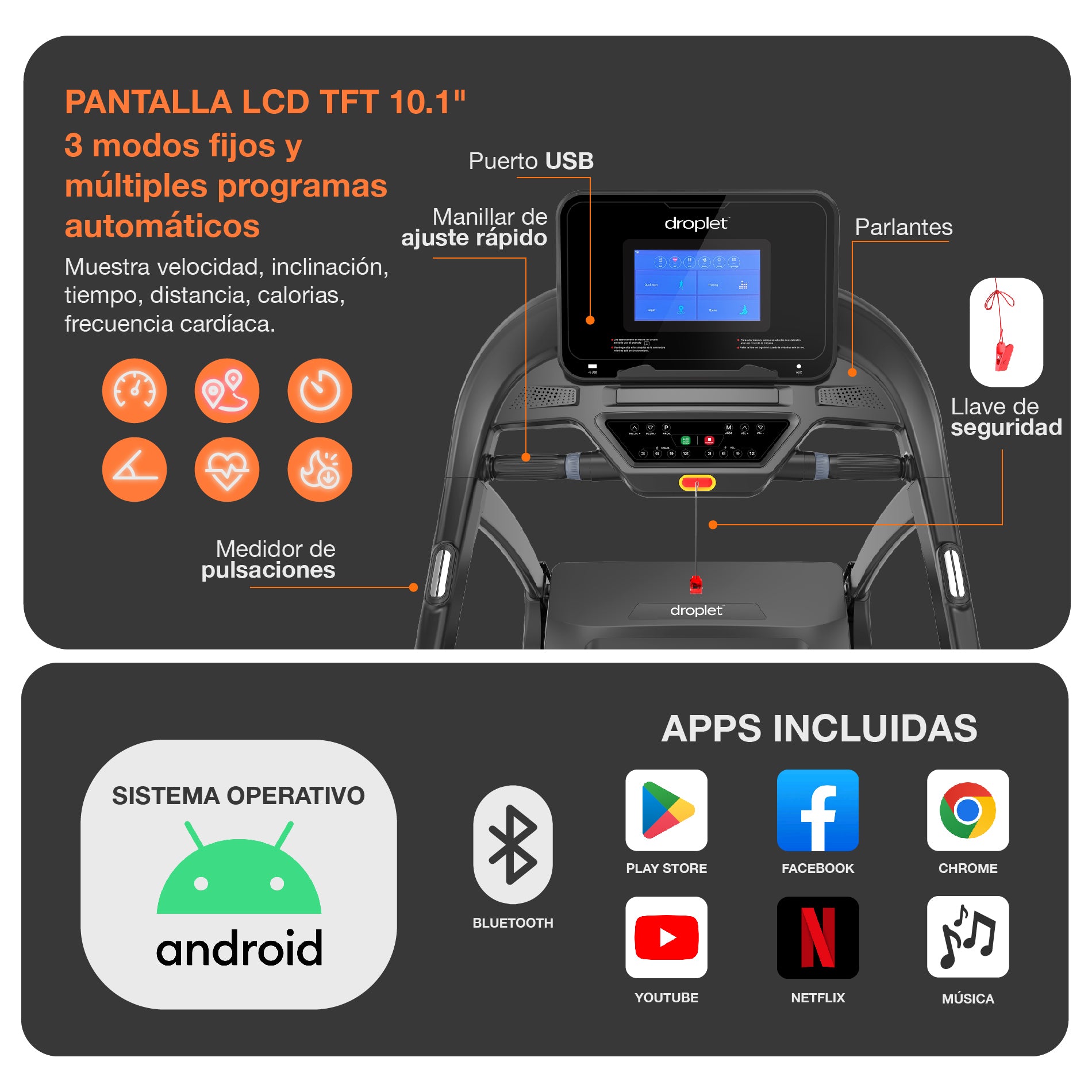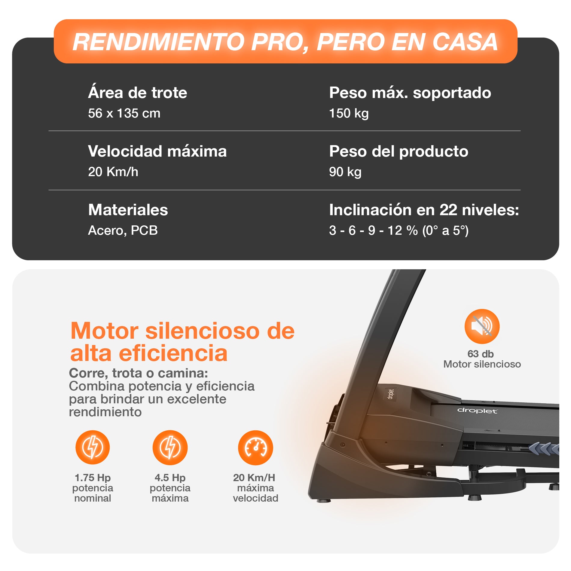 Caminadora Eléctrica Droplet RN820 4.5 hp 20 km/h con LCD
