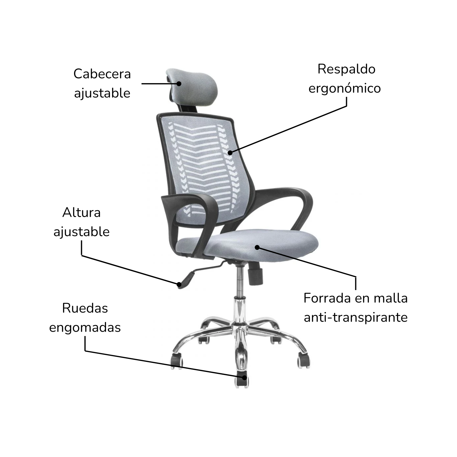 Combo Escritorio Escalonado + Silla de Oficina Gris