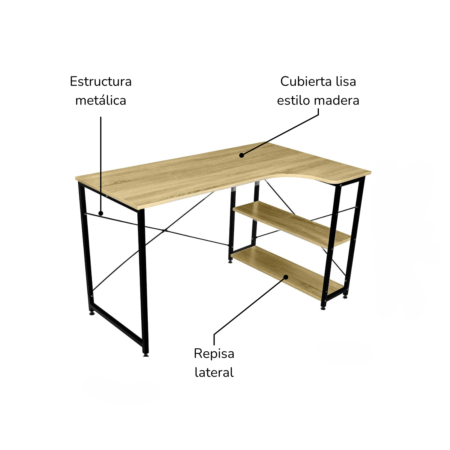 - De muy fácil armado, por lo que puedes disfrutar de tu escritorio sin complicaciones con tan solo un desarmador y siguiendo los sencillos pasos que vienen en el manual de armado.