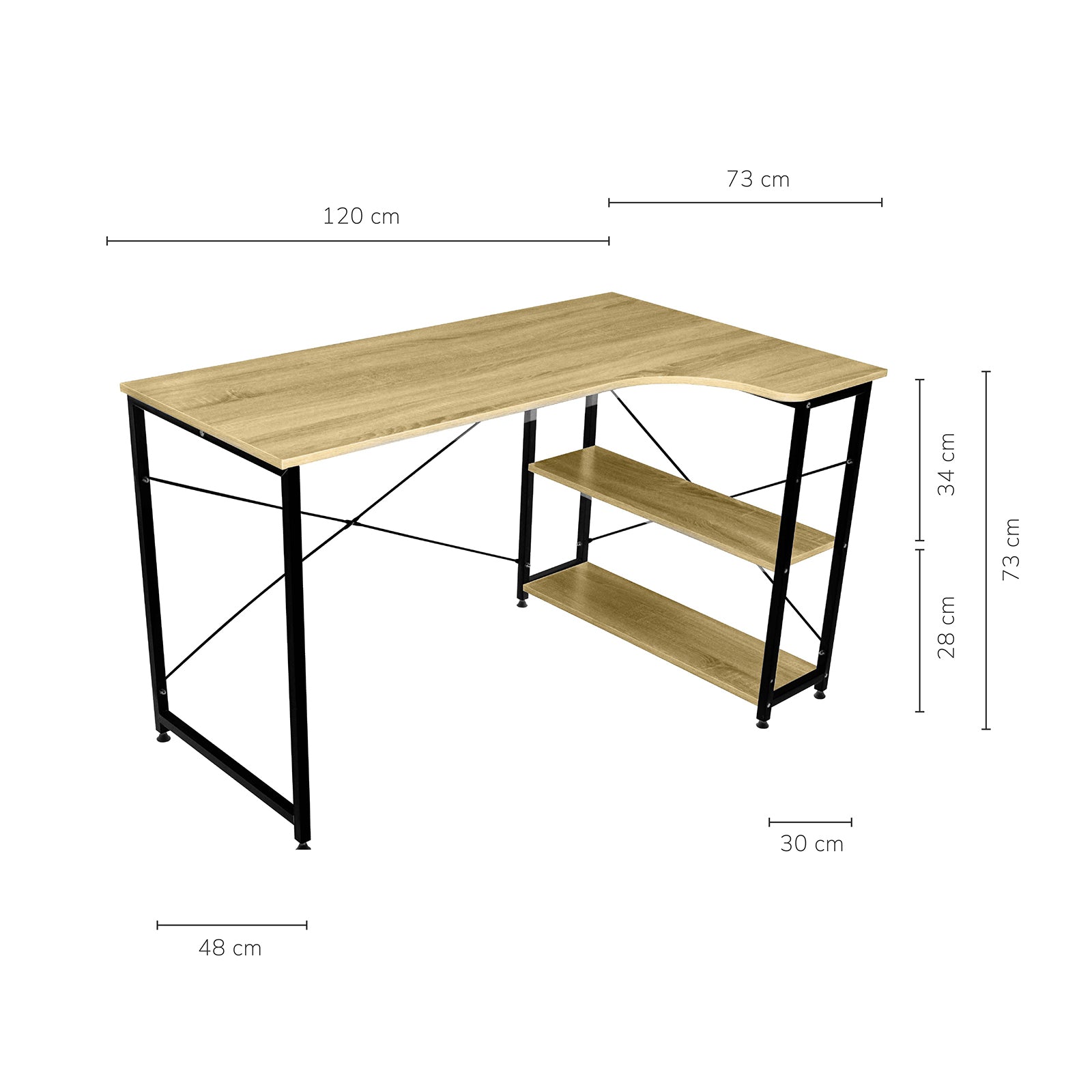 - Cuenta con una amplia superficie de melamina estilo madera que te permite colocar una o dos laptops, teclado, mousepad y muchos elementos más.
