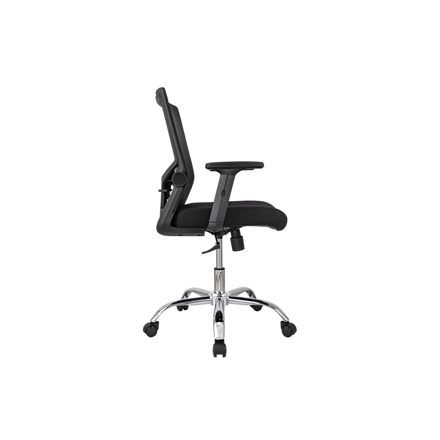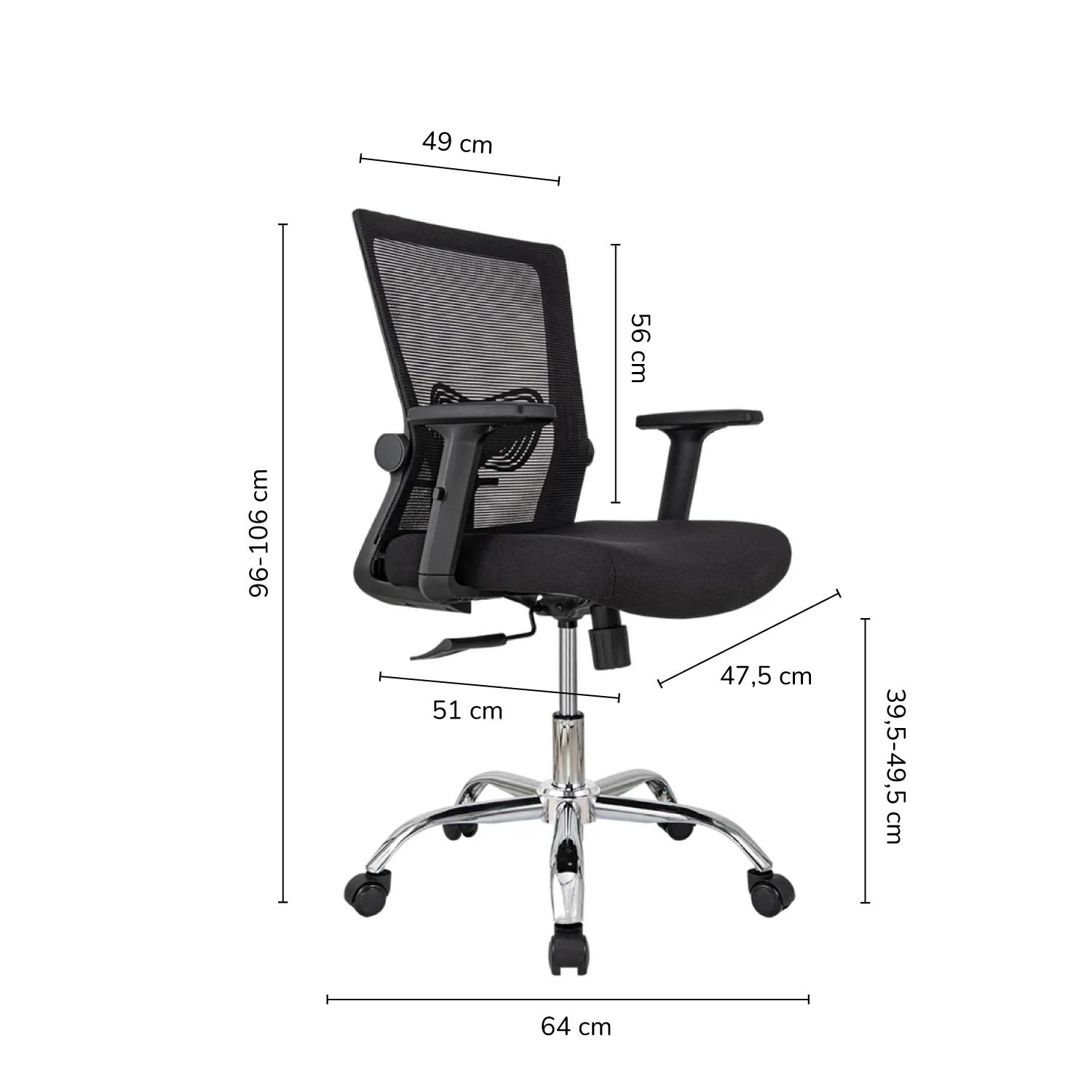 - Su respaldo está elaborado en tela tipo paño con marco de polipropileno y su asiento de tela microperforada tipo malla y espuma de poliuretano.