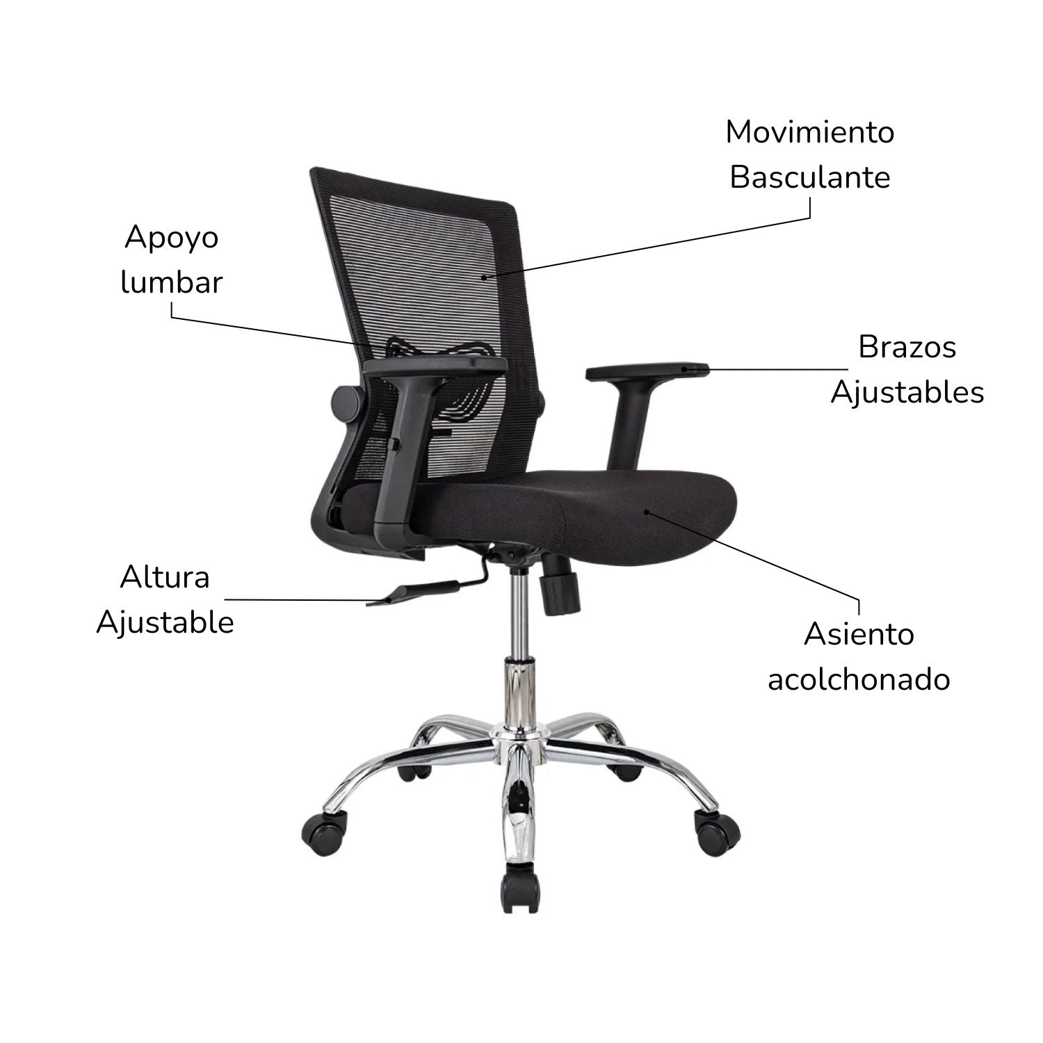 - Diseño ergonómico con apoyo lumbar ajustable en altura.