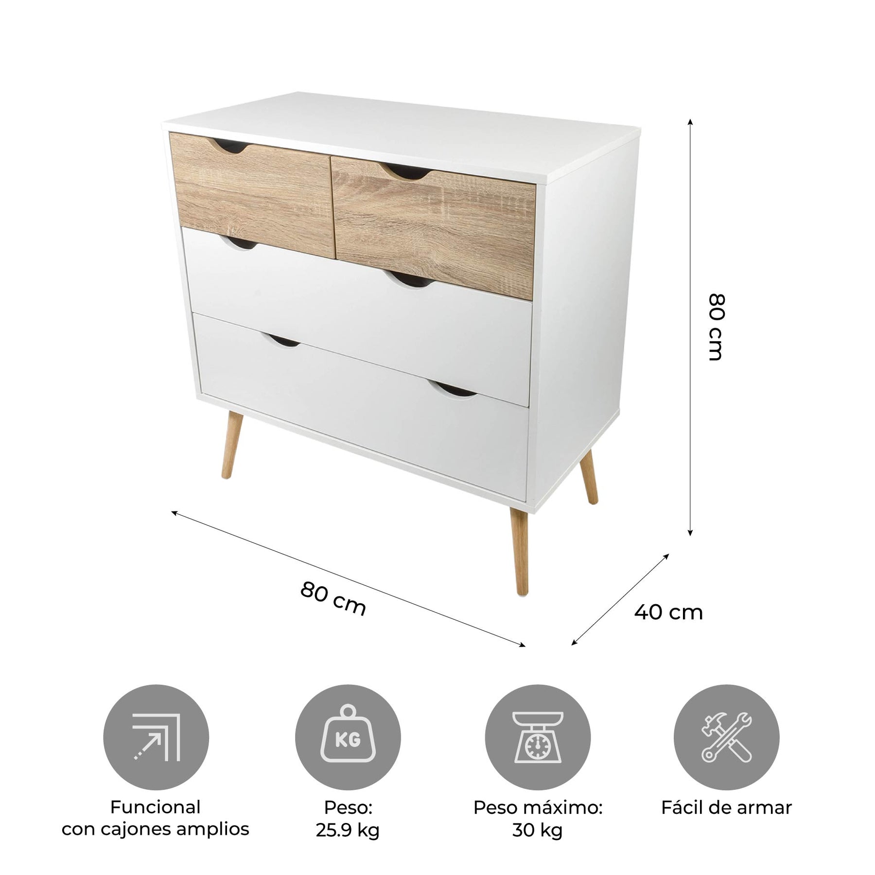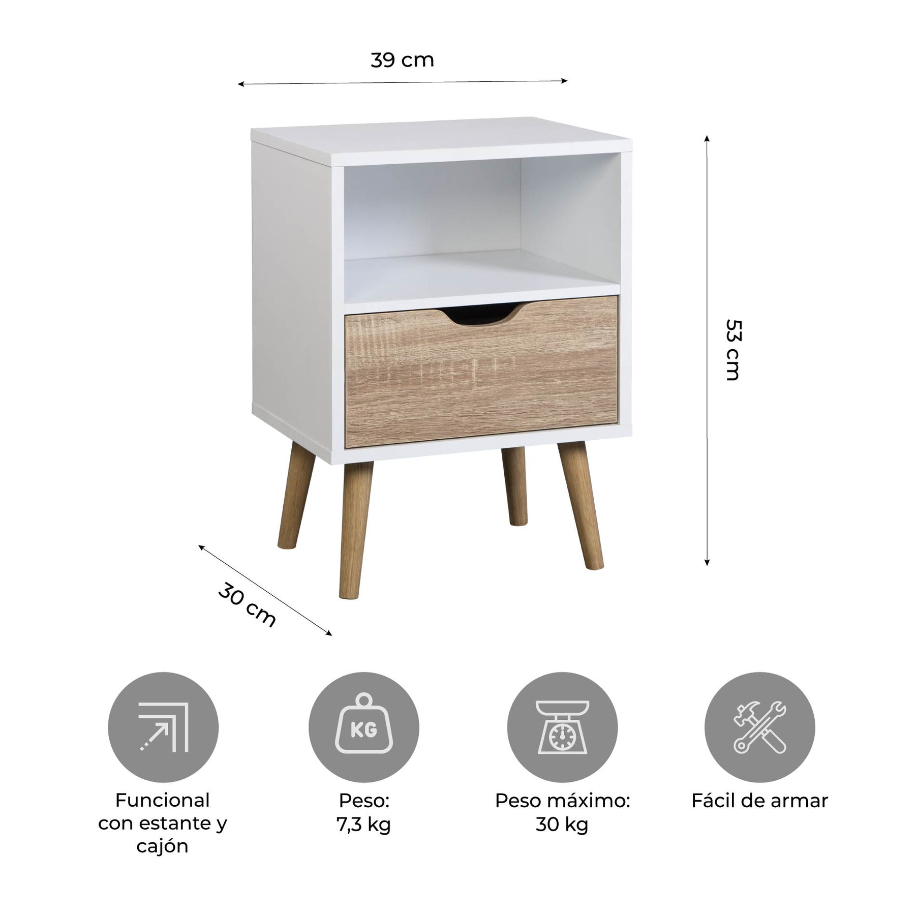 Peso máximo soportado: superficie 30 kg, estante 10kg y cajón 5 kg