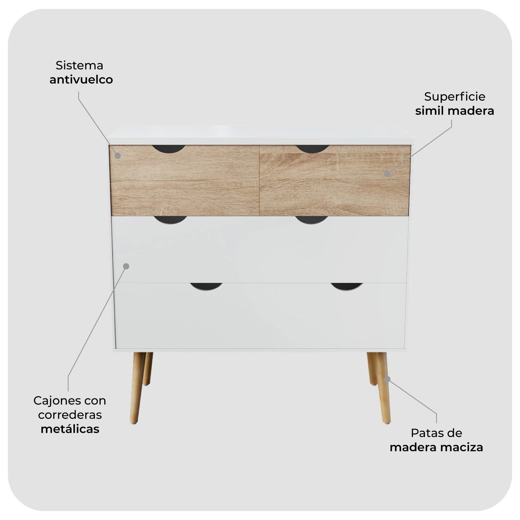 Conoce nuestro combo estilo nórdico para recámara en tonos madera clara y blanco. Ideal para completar tu habitación con muebles de excelente calidad y un gran estilo. Incluye dos burós y una cómoda con amplio espacio de almacenamiento. Suma diseño a tu hogar y dale un toque cálido a tus espacios con este práctico set.