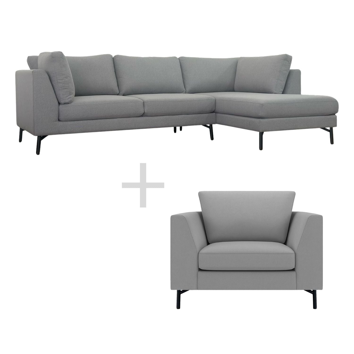 Combo Sofá Modular + Sillón Individual Murcia Gris Claro