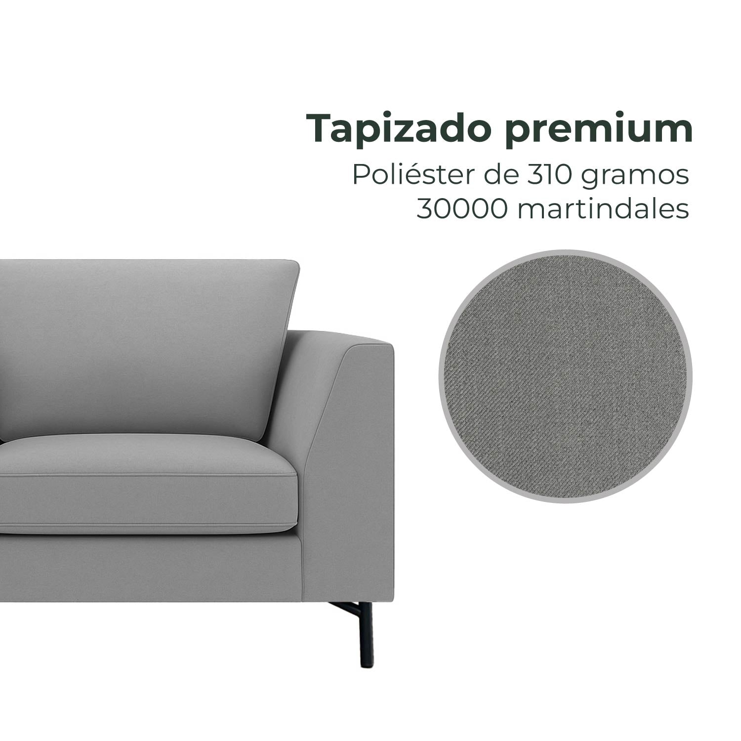 Tapizado en 100% poliéster premium de 310 gramos (30000 martindales)