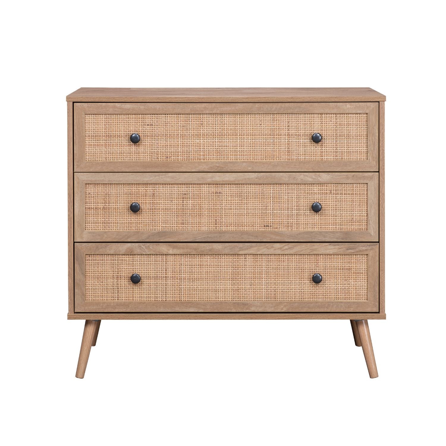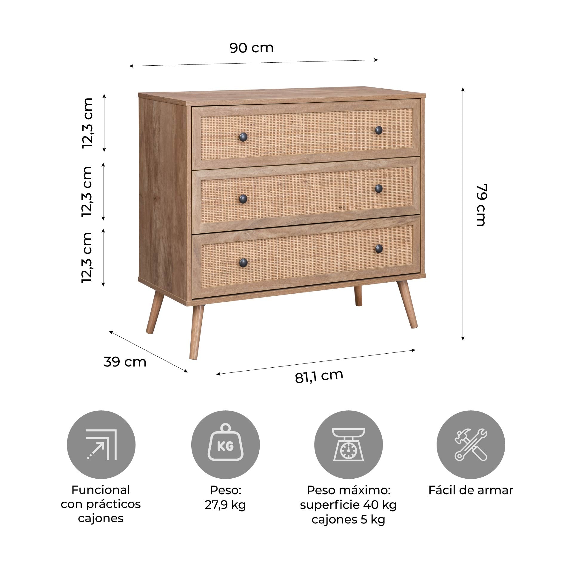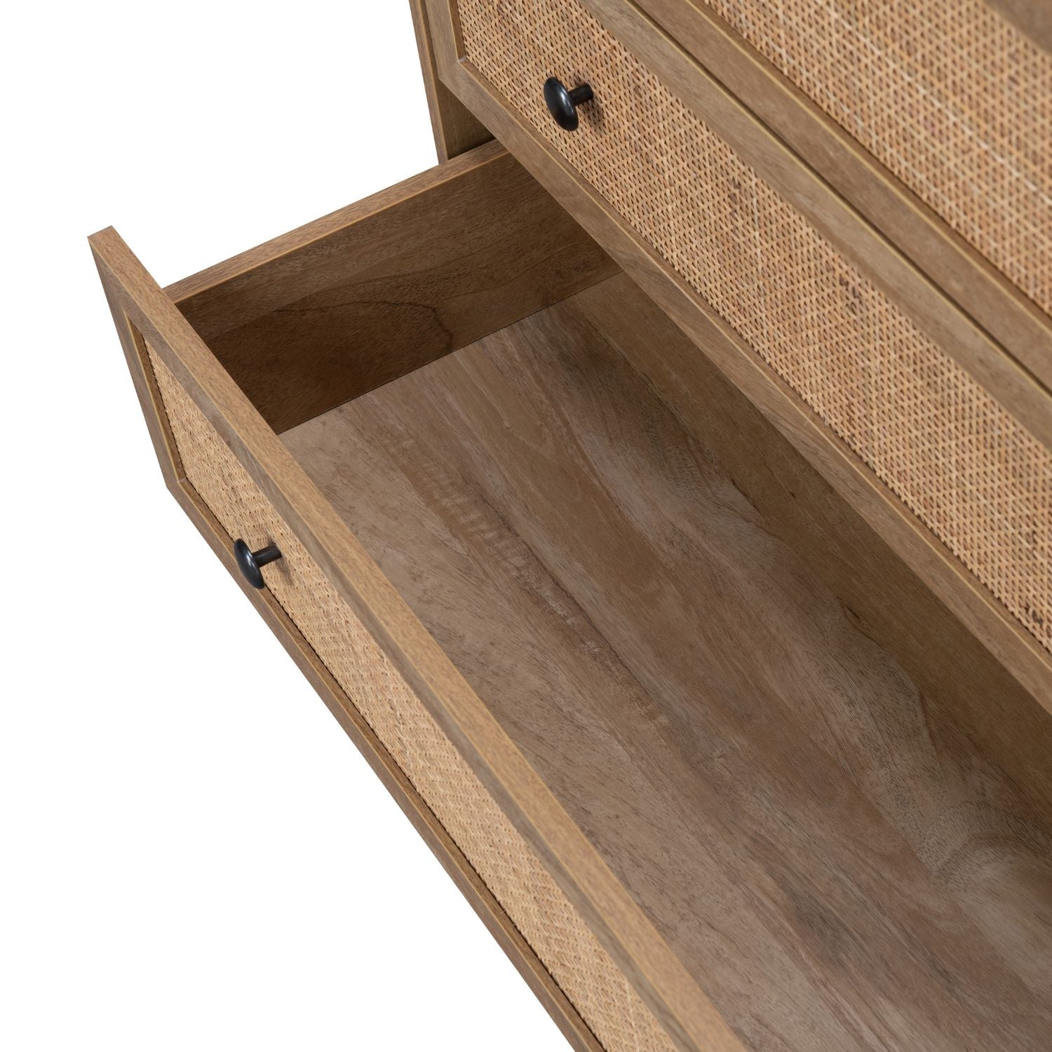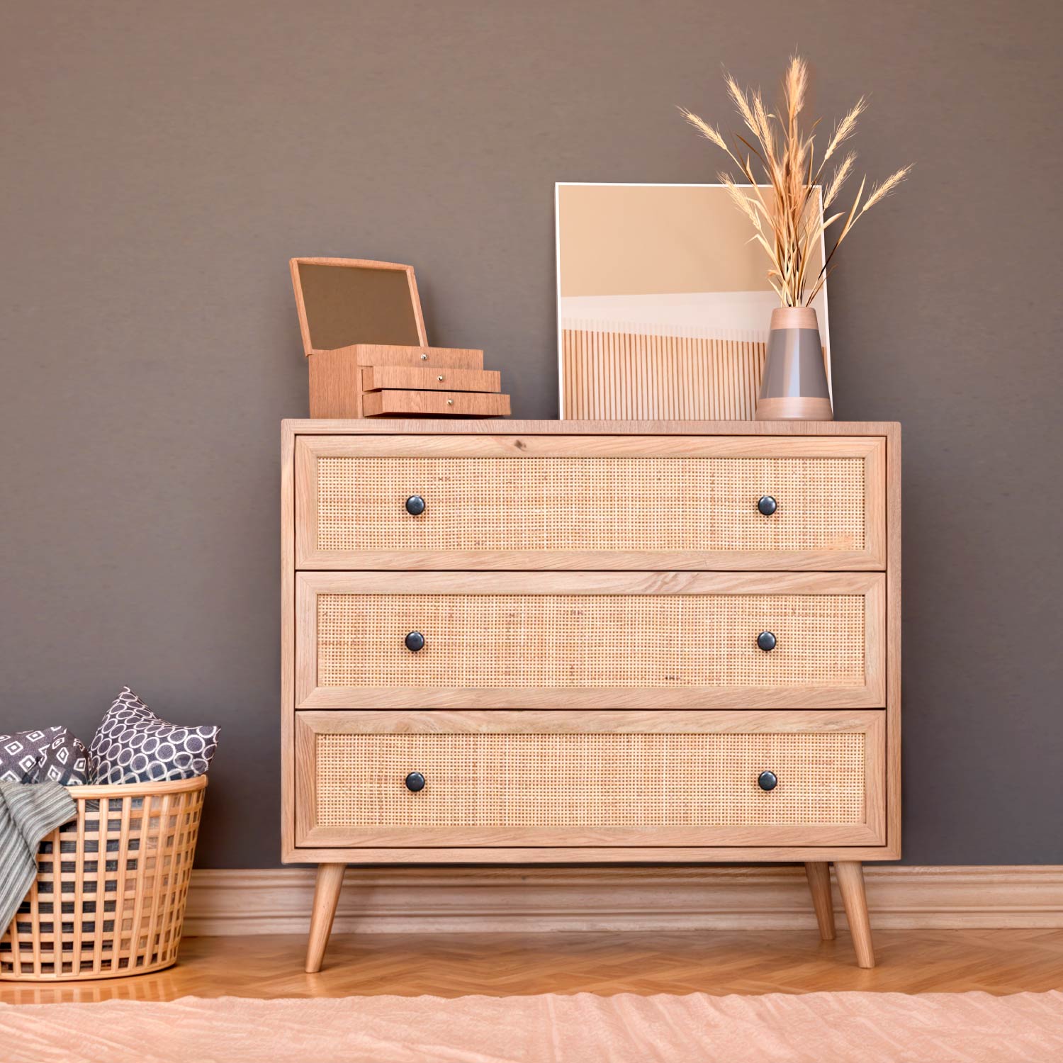 Incorpora esta moderna cómoda con ratán en tu hogar y dale personalidad a tus espacios. Gracias a su material natural y colores claros, es ideal para obtener un estilo decorativo cálido y artesanal. Podrás colocarla en tu sala, recámara o entrada, es un mueble muy versátil.