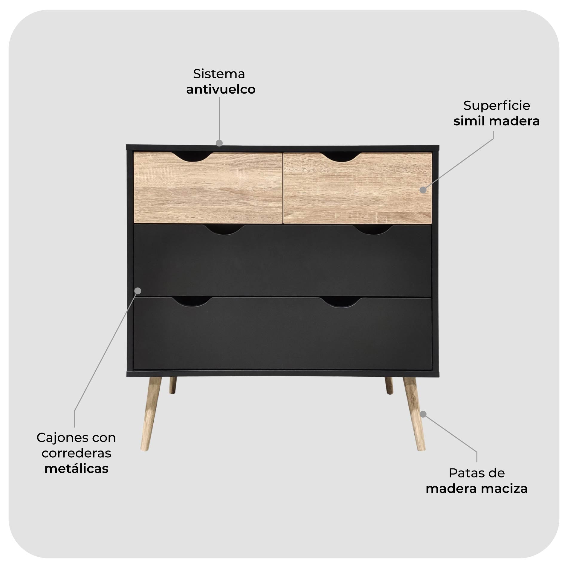 - Elaborada con tablero de partículas y madera, materiales de alta calidad