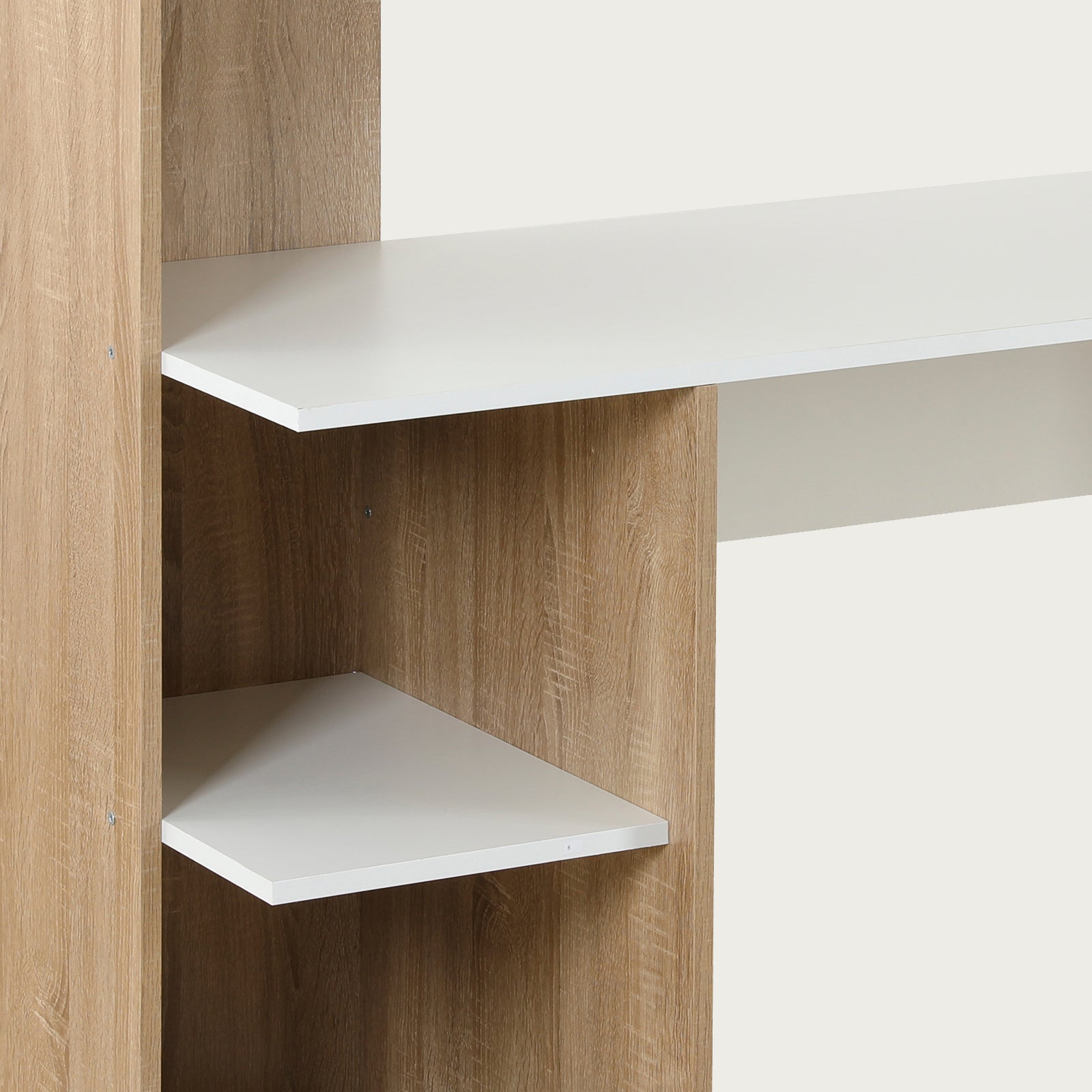 Disfruta de este funcional escritorio estilo nórdico, ideal para montar tu espacio de home office o lugar de estudio en tu hogar. Aprovecha al máximo sus prácticos estantes y mantén tus espacios visiblemente ordenados.