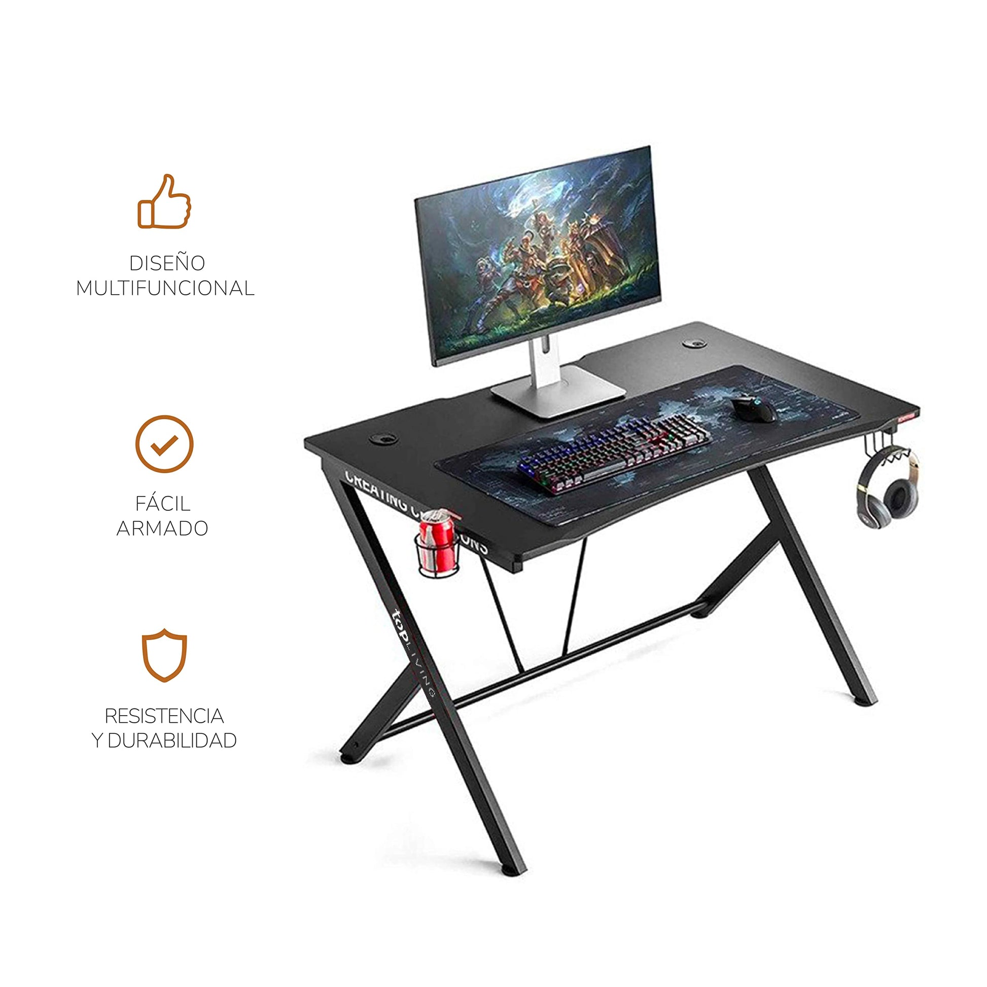 Disfruta de este escritorio diseñado para gamers como tú. Se adapta a la perfección a cualquier espacio de tu casa gracias a su tamaño y diseño minimalista.