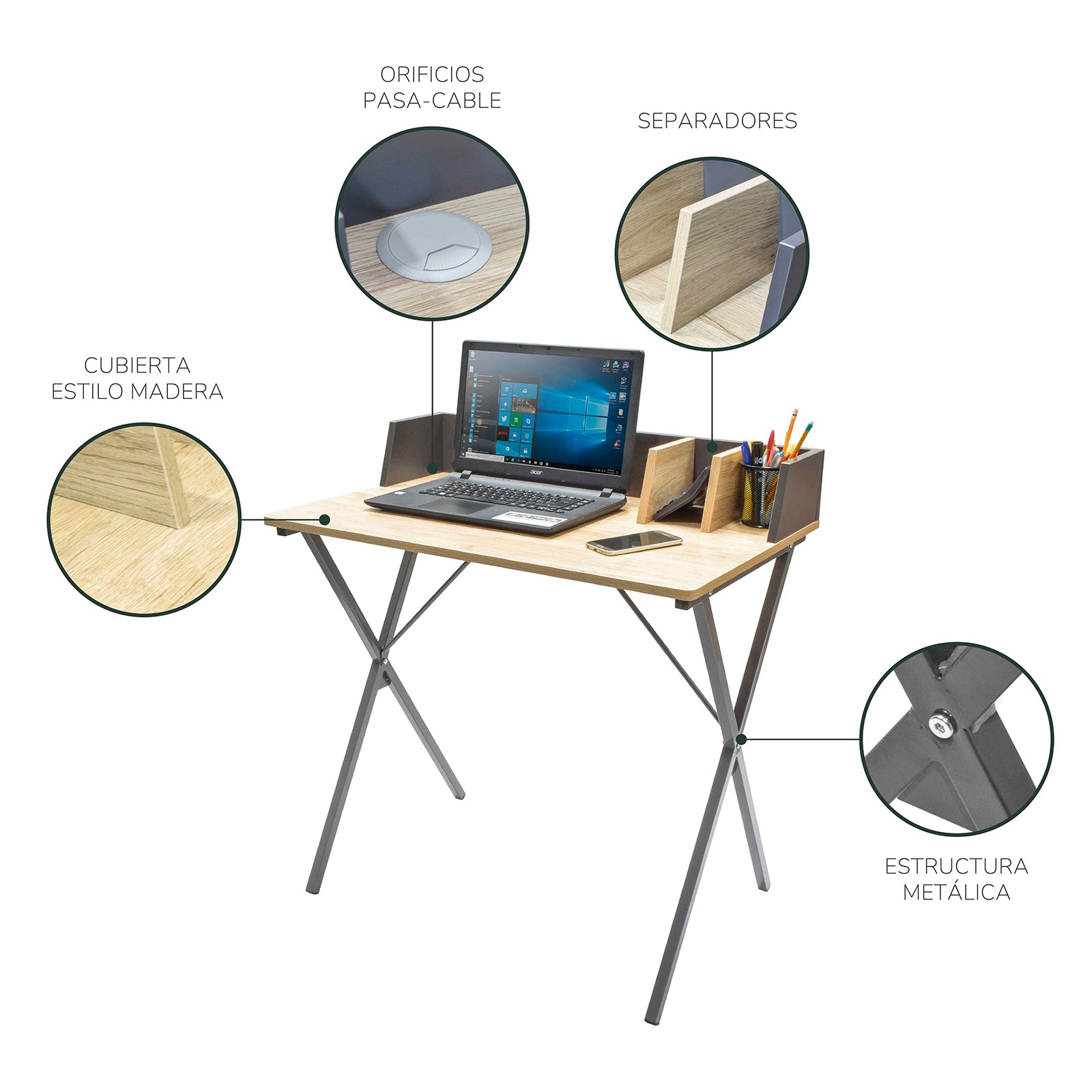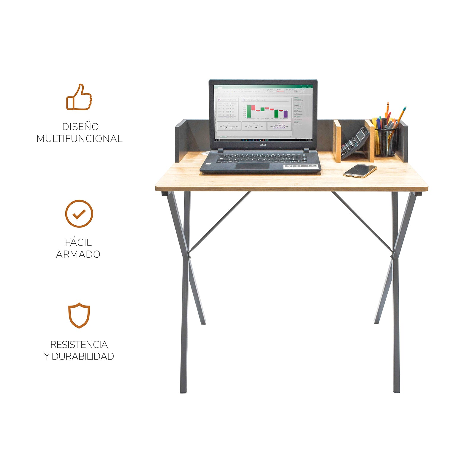 Disfruta de este compacto escritorio, ideal para armar tu espacio de home office o estudio utilizando el mínimo espacio. Gracias a su acabado estilo madera es un mueble estético que puede adaptarse a cualquier tipo de decoración.