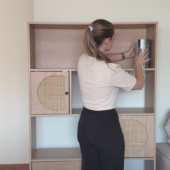 Crea tu propia biblioteca en casa o mantén tus espacios decorados y organizados con este amplio y práctico librero vertical. Su moderno diseño en ratán con colores claros, es ideal para obtener un estilo decorativo cálido y artesanal. Al ser tan versátil podrás colocarlo en cualquier parte de tu hogar, desde tu sala hasta incluso tu recámara.