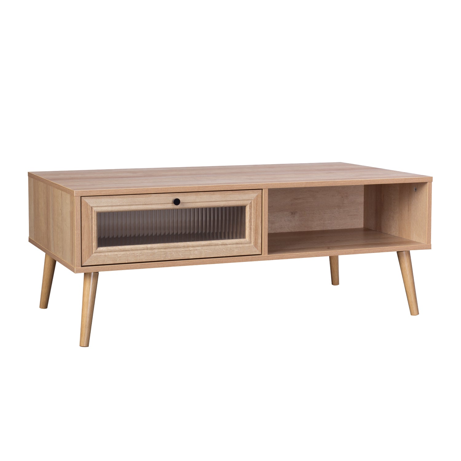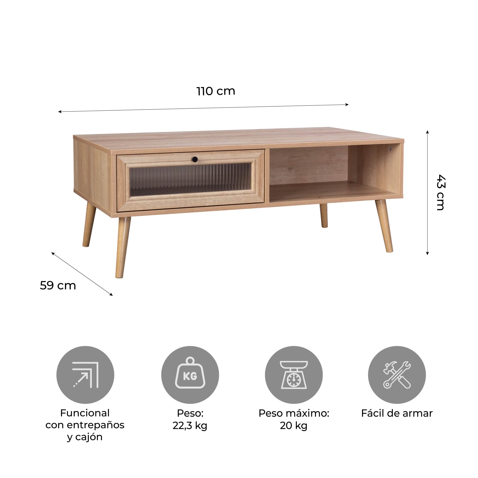 Dale un toque moderno a tu sala con esta práctica mesa de centro con estante y cajón de vidrio. Gracias a su versátil diseño podrás utilizarla también como mesa auxiliar o mesa de café, te permitirá crear el espacio perfecto para compartir momentos agradables.