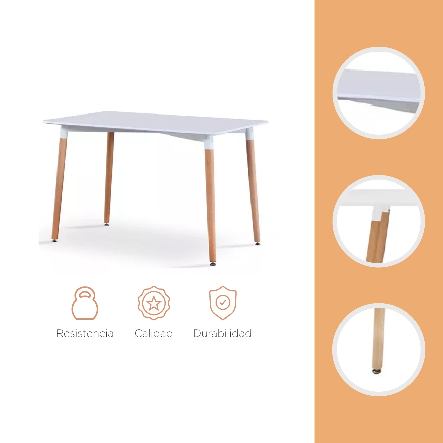 Disfruta de esta mesa rectangular nórdica estilo Eames, un clásico del diseño de interiores que no pasa de moda, combinando calidez, comodidad y funcionalidad. Ideal para colocar en comedores, cocinas o incluso oficinas, ya que se adapta a cualquier tipo de decoración.