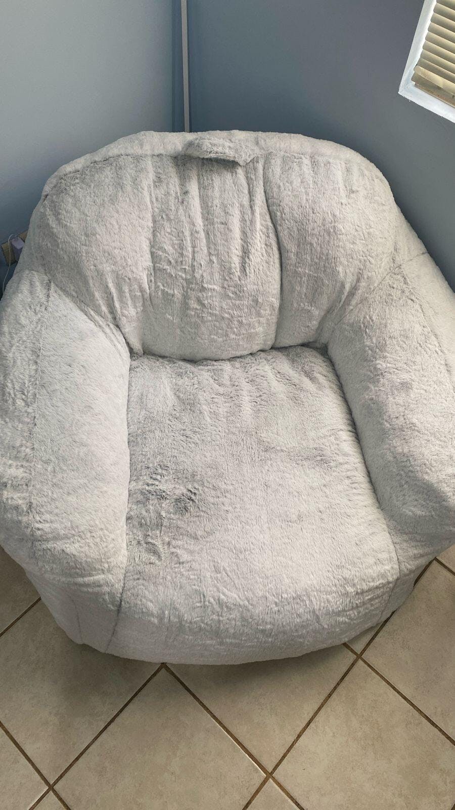 Puff Sillón Individual Tipo Sherpa Gris Claro