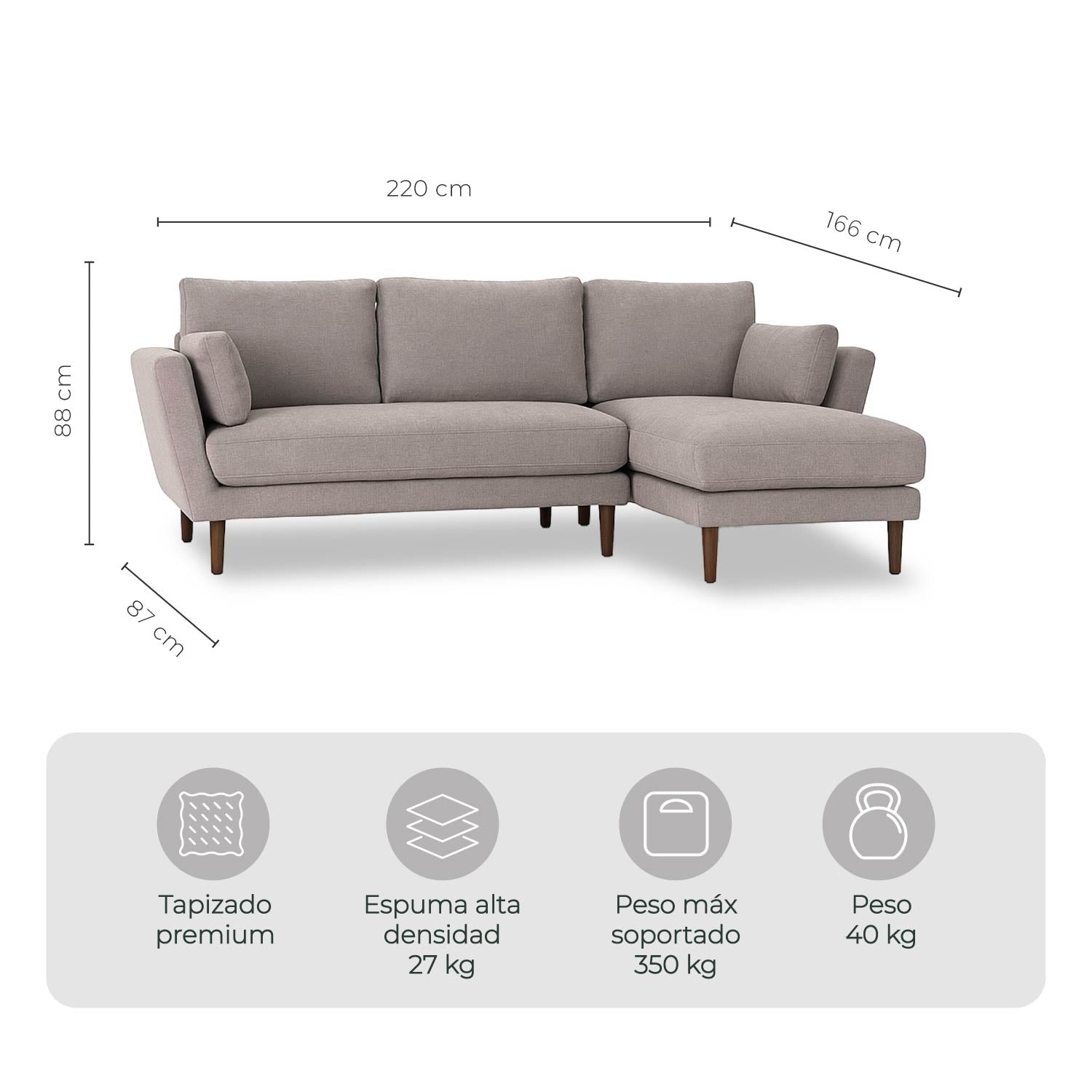 - Medidas: 220 cm largo x 88 cm alto x 87/166 cm profundidad