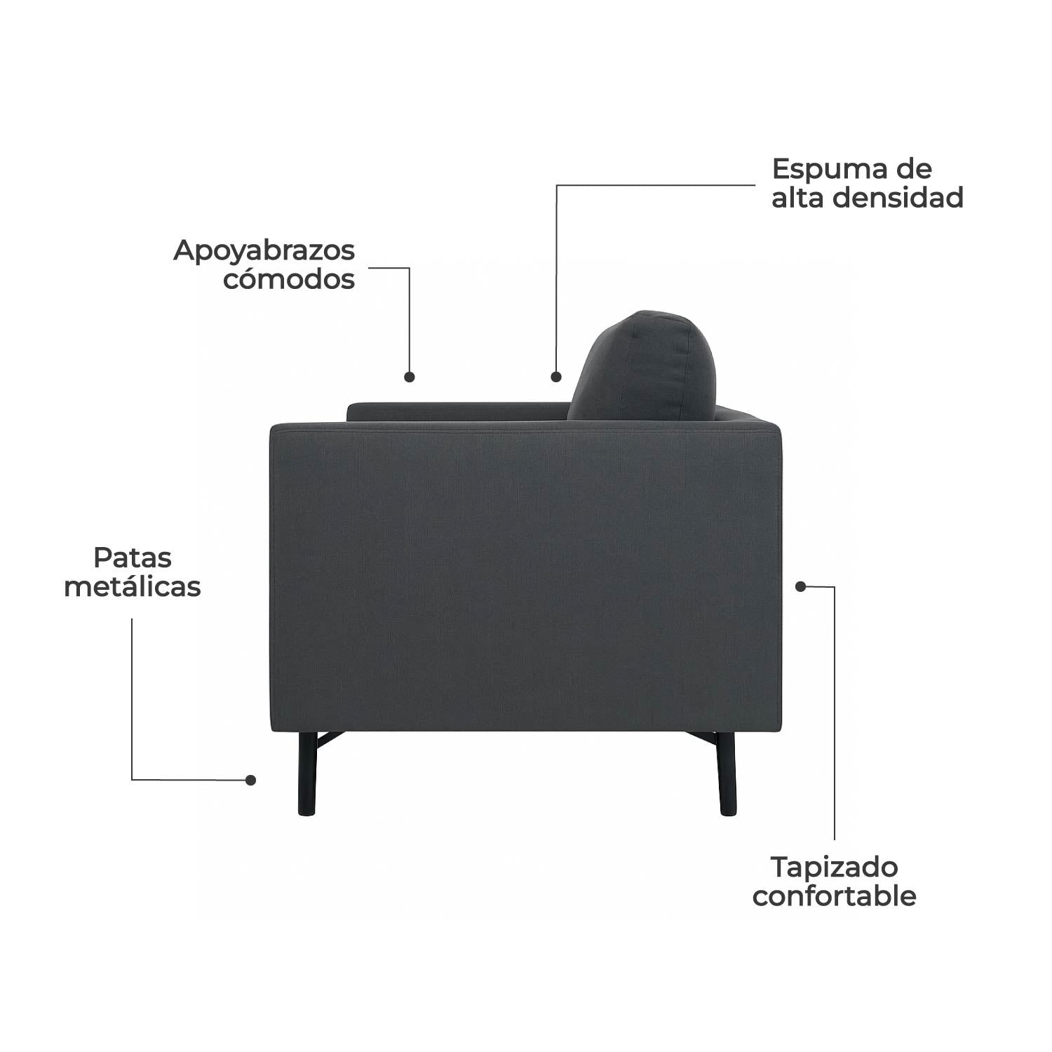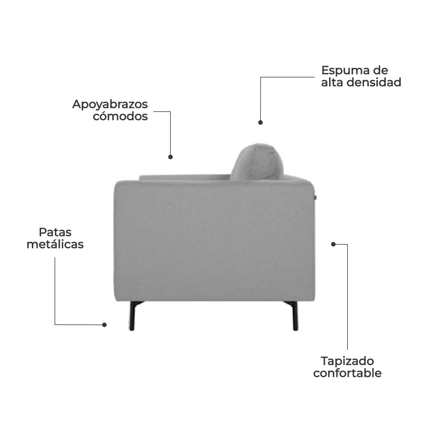 - Estructura confortable, cuenta con espuma de 27 kg de densidad