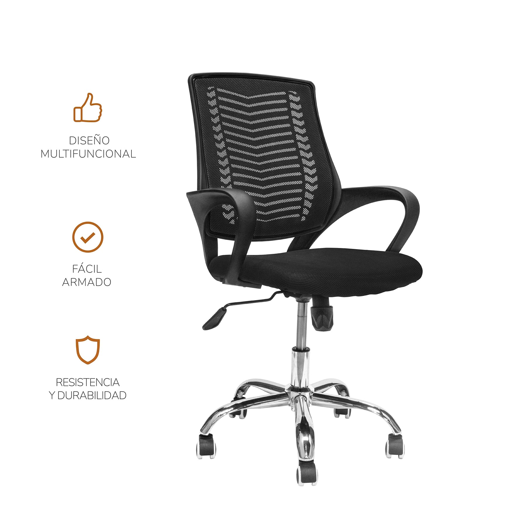 - Respaldo ergonómico forrado en malla anti-transpirante.