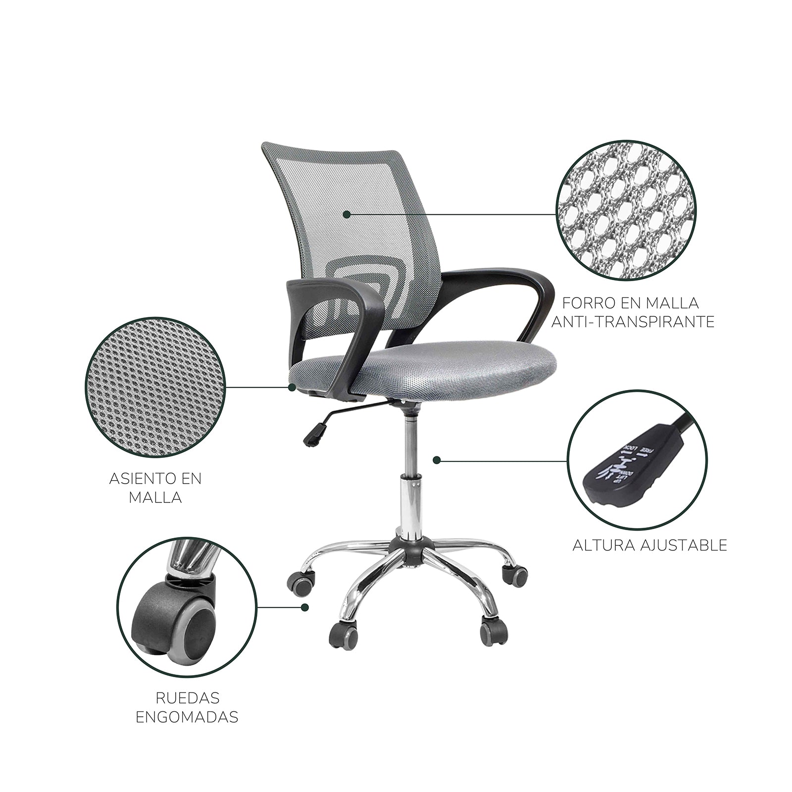 - Cuenta con asiento y respaldo forrados en malla antitranspirante.