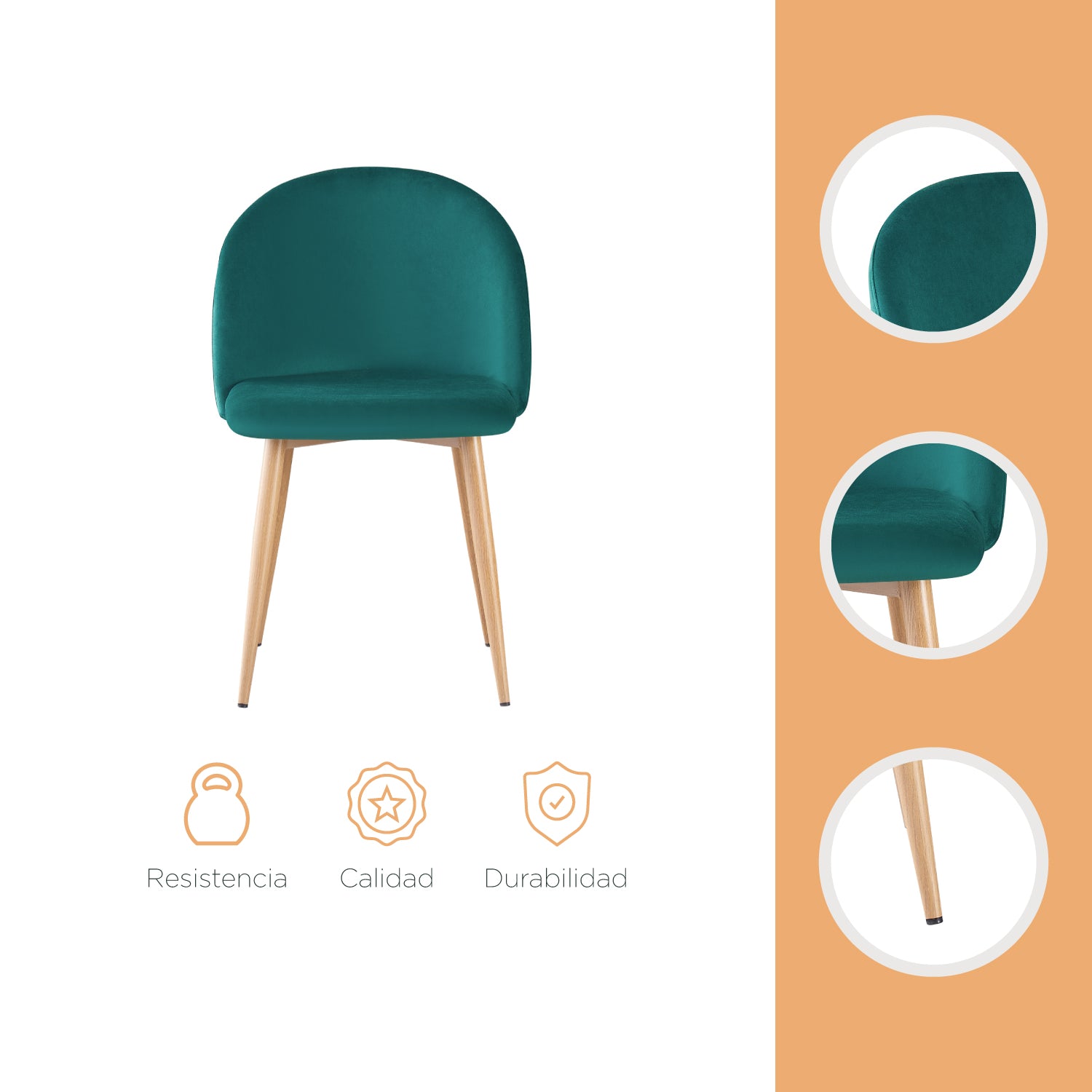 Disfruta de este elegante set de sillas de comedor en tu hogar y dale un toque especial a tus ambientes. Su diseño moderno combina textiles sofisticados y tonalidades refrescantes, unas sillas ideales para colocar en salas, comedores y oficinas.