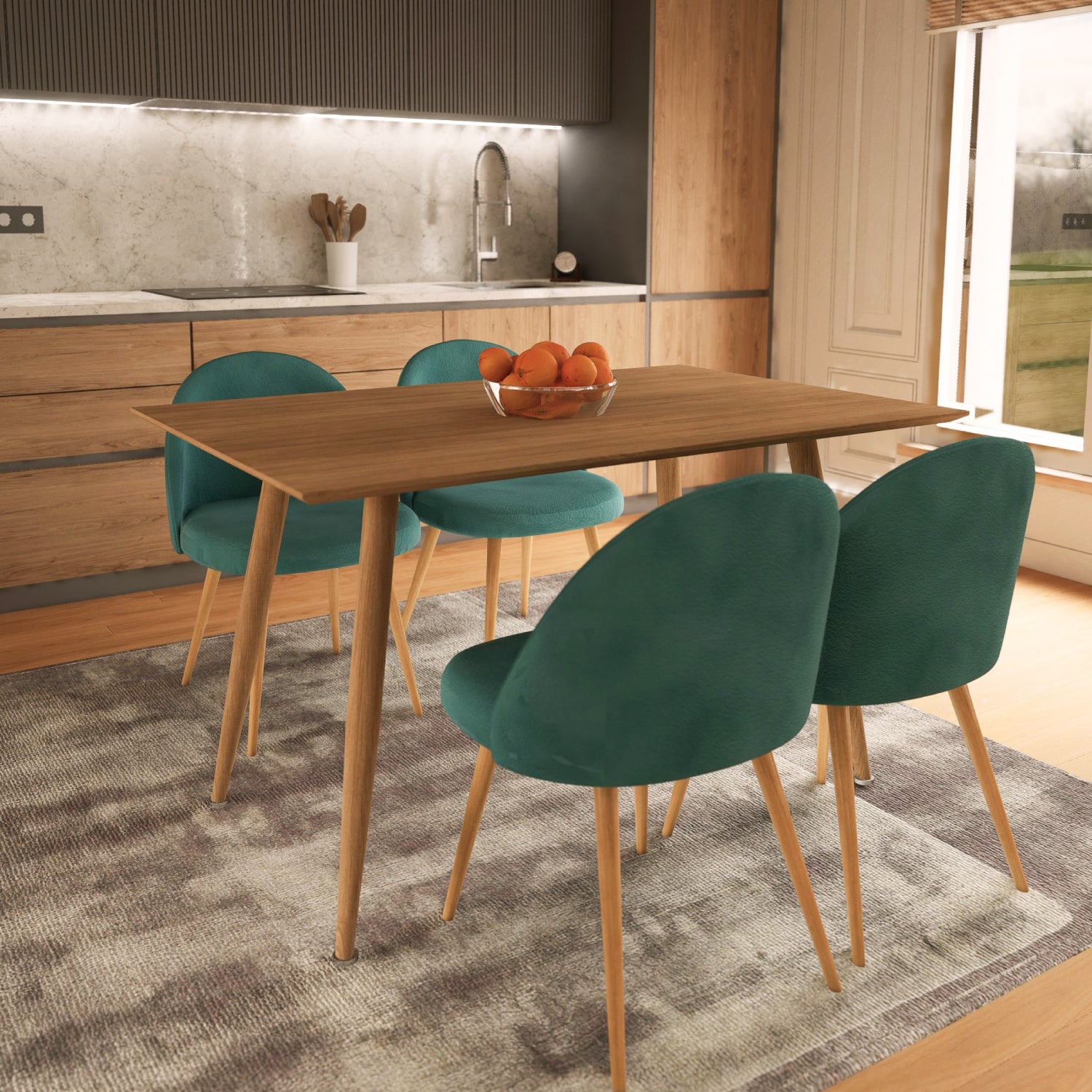 Set 4 Sillas de Sala Comedor Modernas Terciopelo Verde