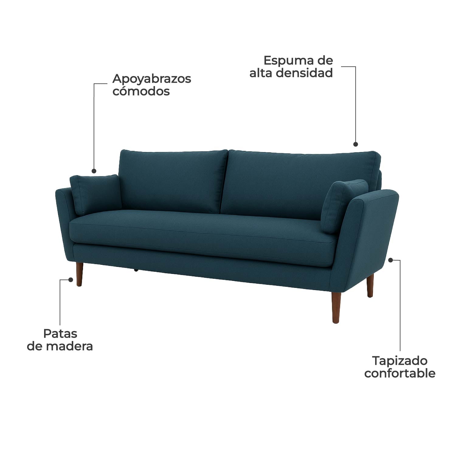 Transforma tu sala con este hermoso sofá de 3 plazas, ideal para quienes buscan estilo, comodidad y versatilidad en un solo mueble. Su diseño azul marino lo convierte en la opción perfecta para darle un toque de color a cualquier espacio. Disfruta de tu nuevo centro de reuniones, comparte bellos momentos y relájate al 100% en la calidez de tu hogar.