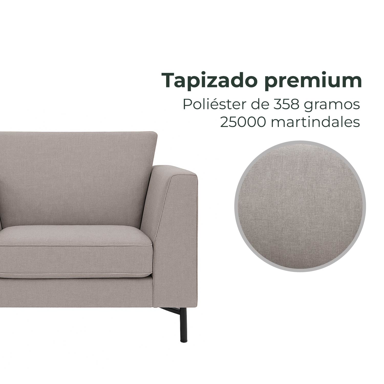 Tapizado en 100% poliéster premium de 358 gramos (25000 martindales)