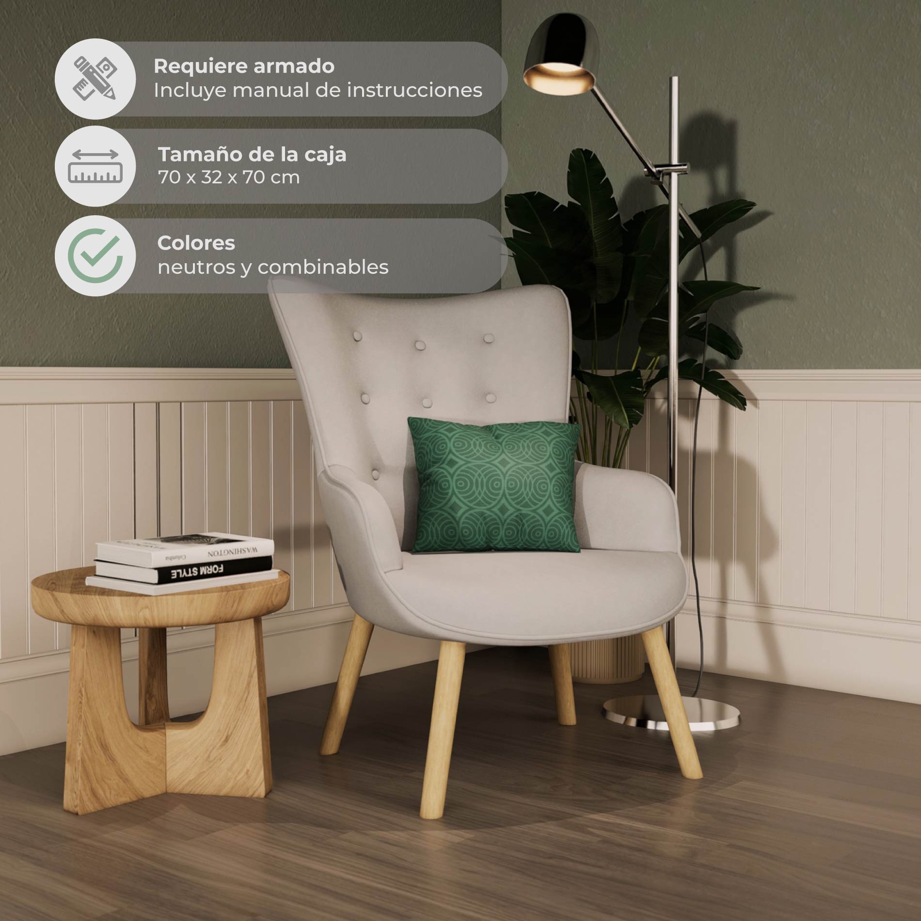 Disfruta de este moderno sillón individual en tu hogar y dale un toque especial a tus ambientes. Combina textiles sofisticados, tonalidades neutras y un diseño capitoné en su respaldo, el sillón ideal para colocar en salas, comedores y oficinas.