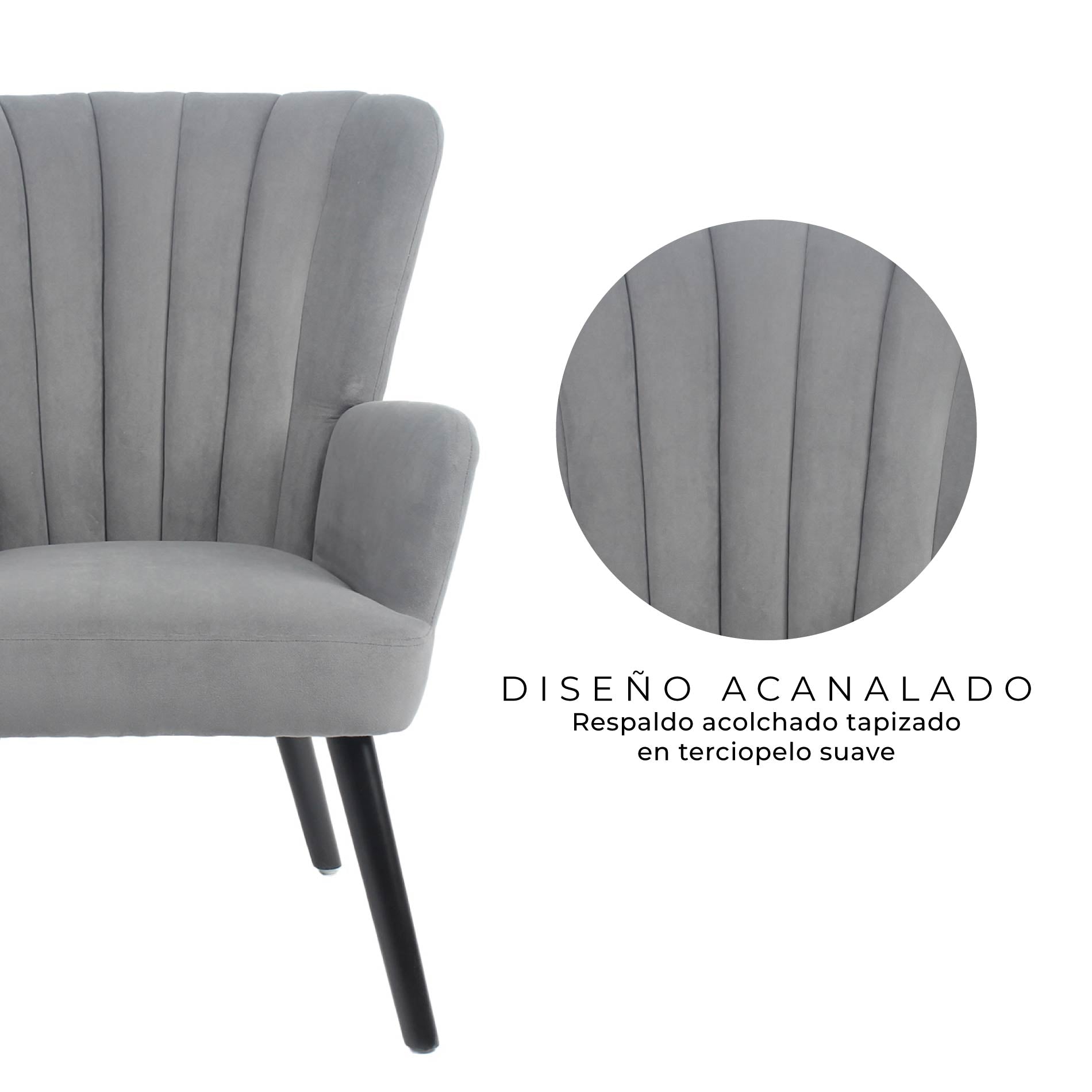 Sillón Individual para Sala Comedor Terciopelo Gris Oscuro