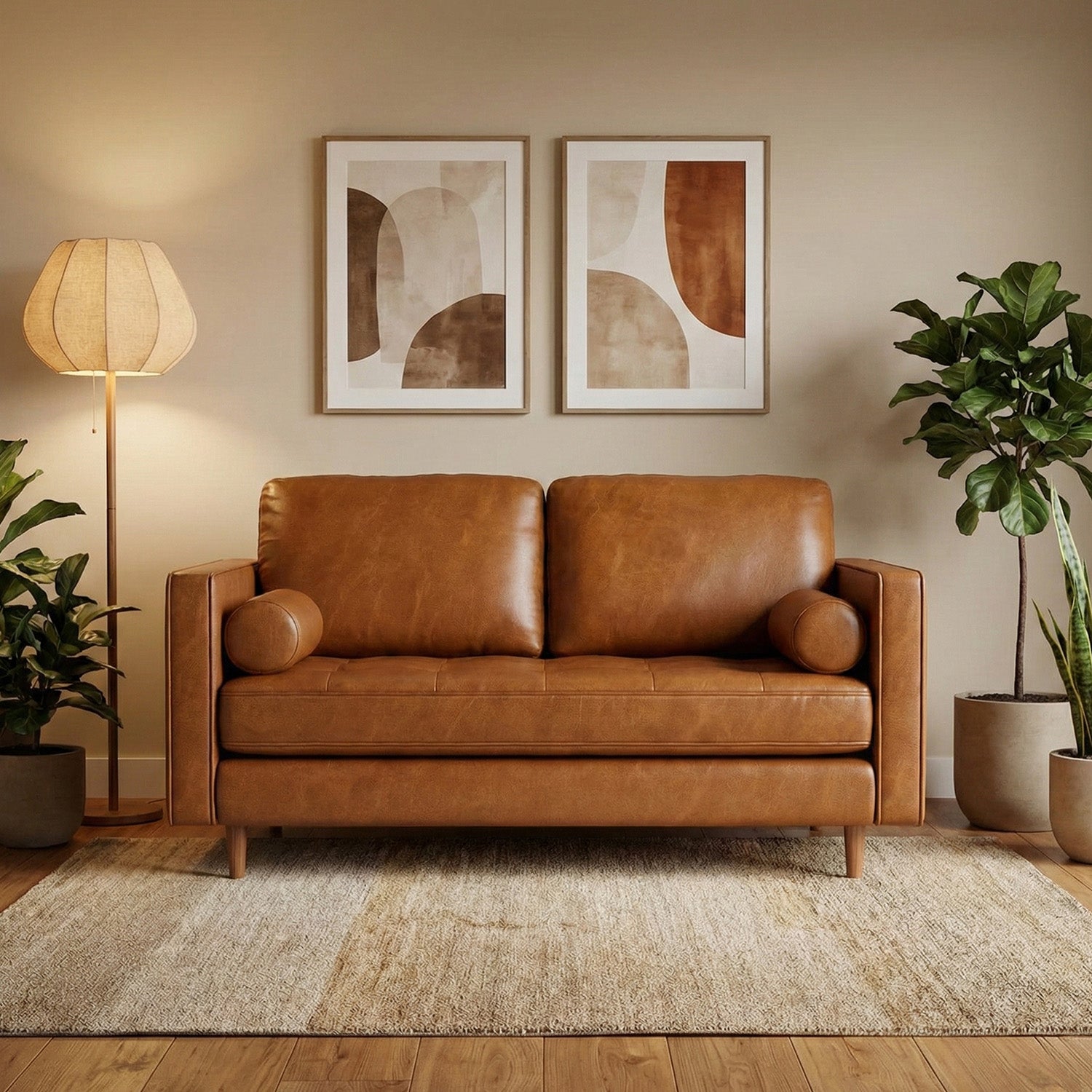 Sofá 2 Plazas Oviedo Simil Cuero Café