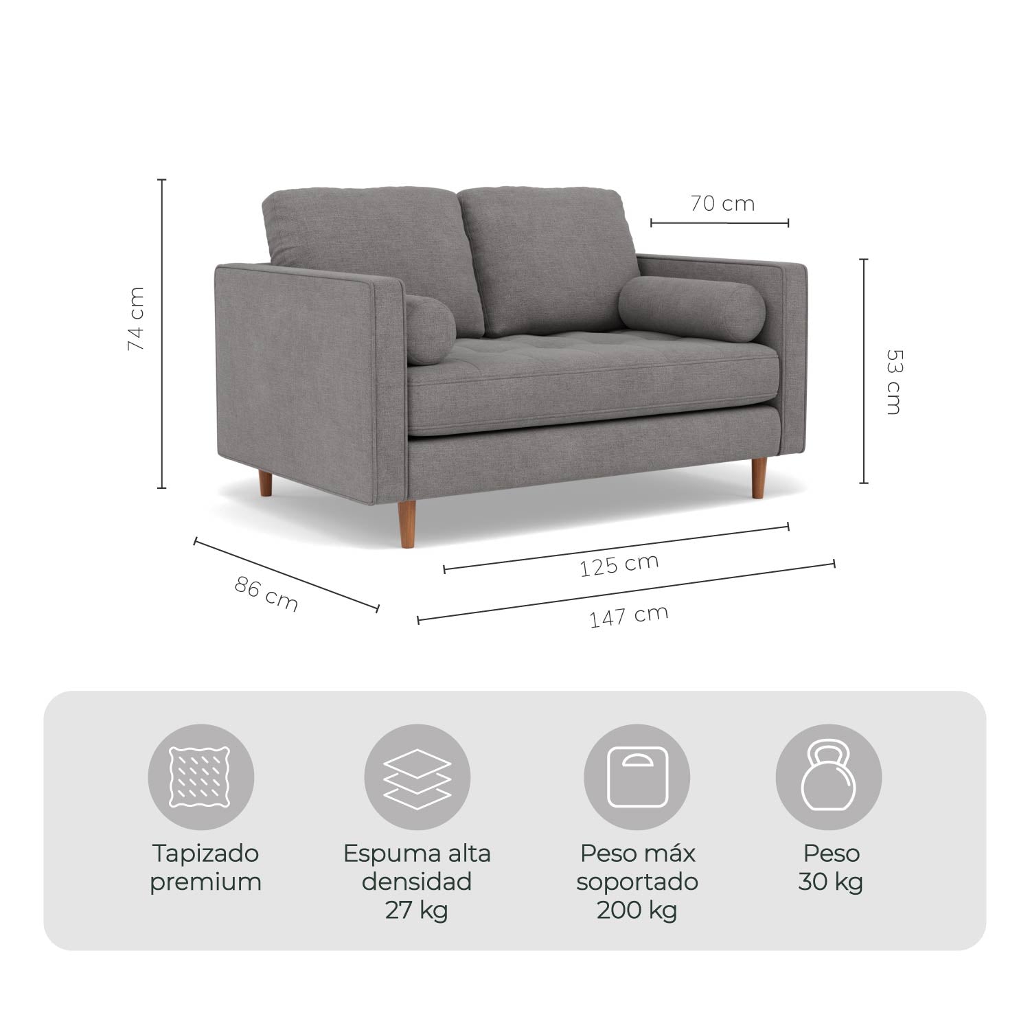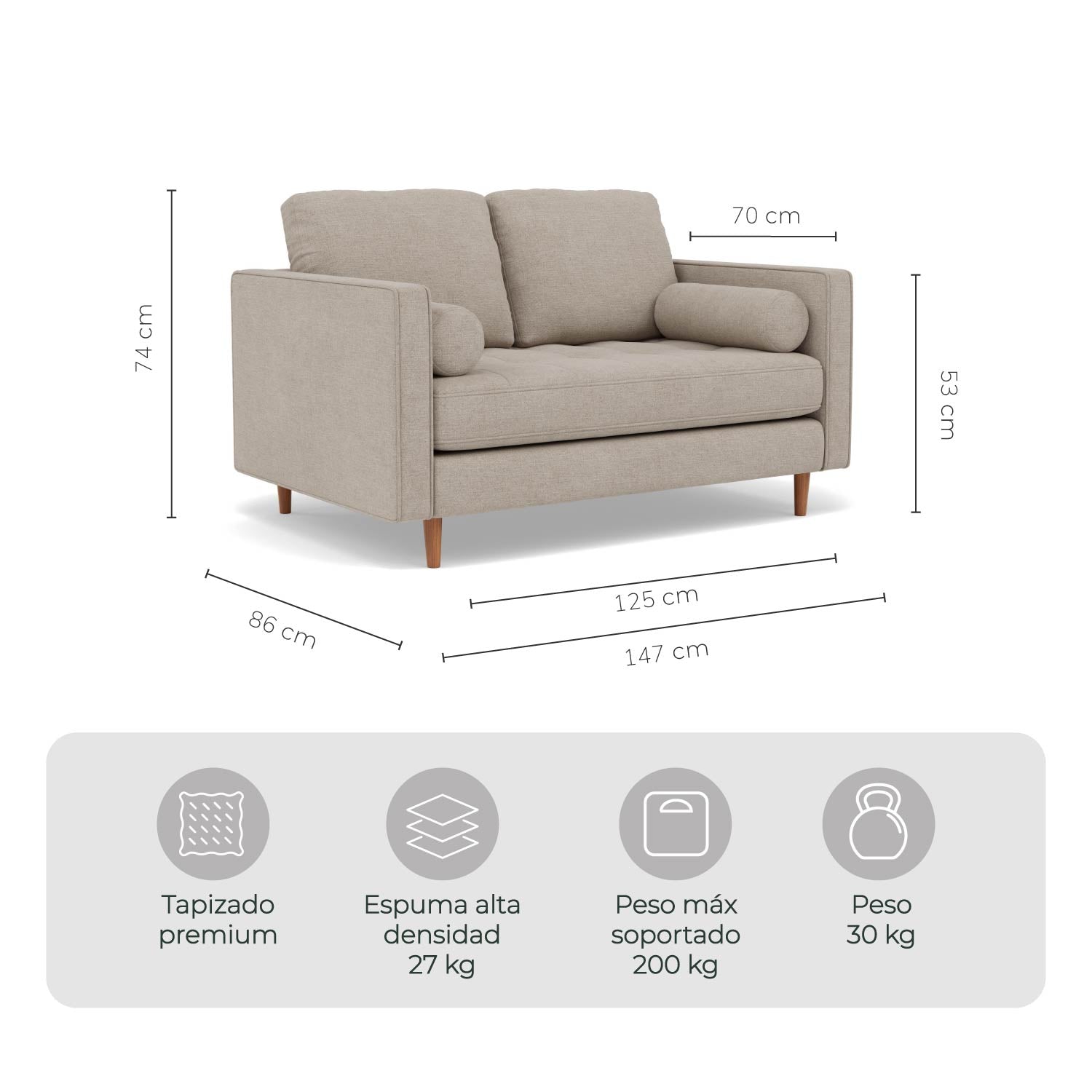 Transforma tu sala con este hermoso sofá de 2 plazas, ideal para quienes buscan estilo, comodidad y versatilidad en un solo mueble.Su diseño en tonalidades neutras lo convierten en la opción perfecta para complementar cualquier tipo de decoración. Disfruta de tu nuevo centro de reuniones, comparte bellos momentos y relájate al 100% en la calidez de tu hogar.