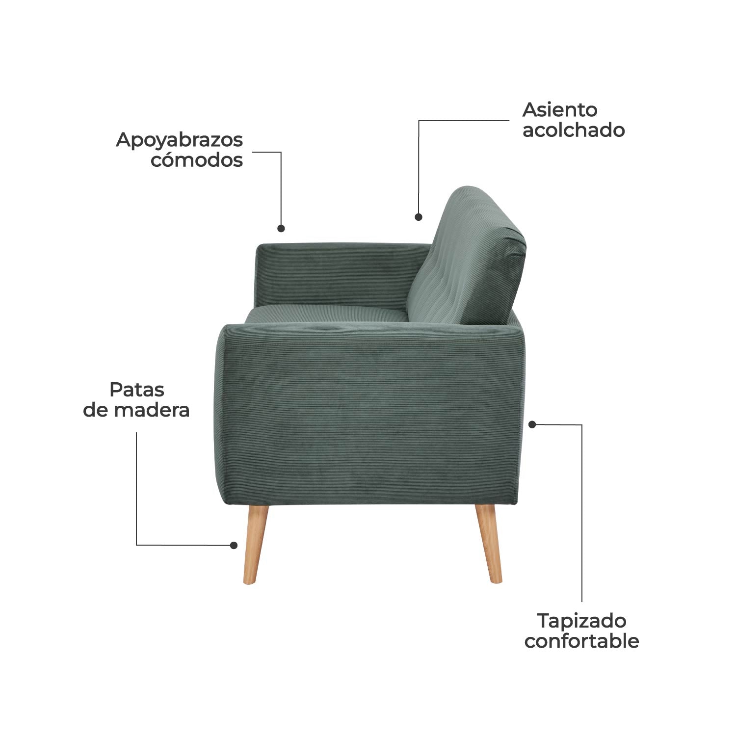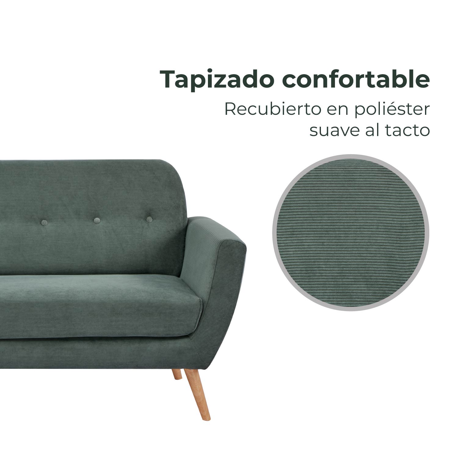 - Elaborado en madera, espuma de alta densidad (60kg/m3) y tela 90% poliéster / 10% nylon