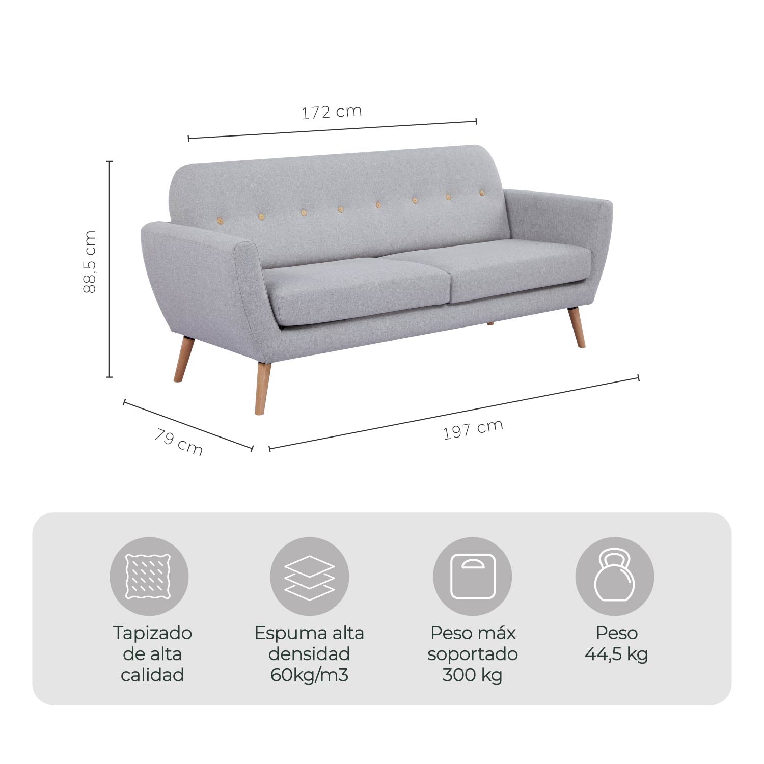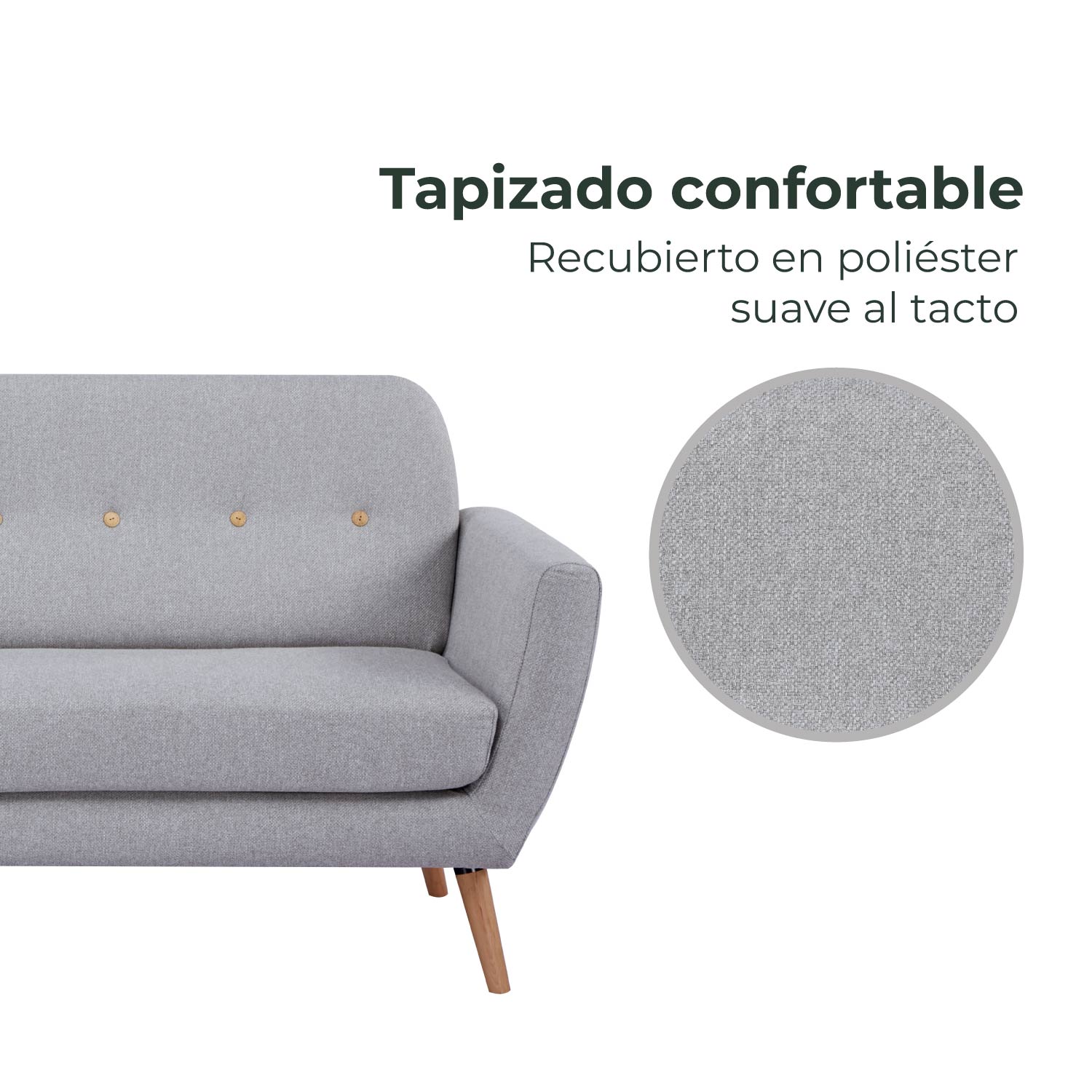 Sofá 3 Plazas Capena Respaldo Capitoné Gris