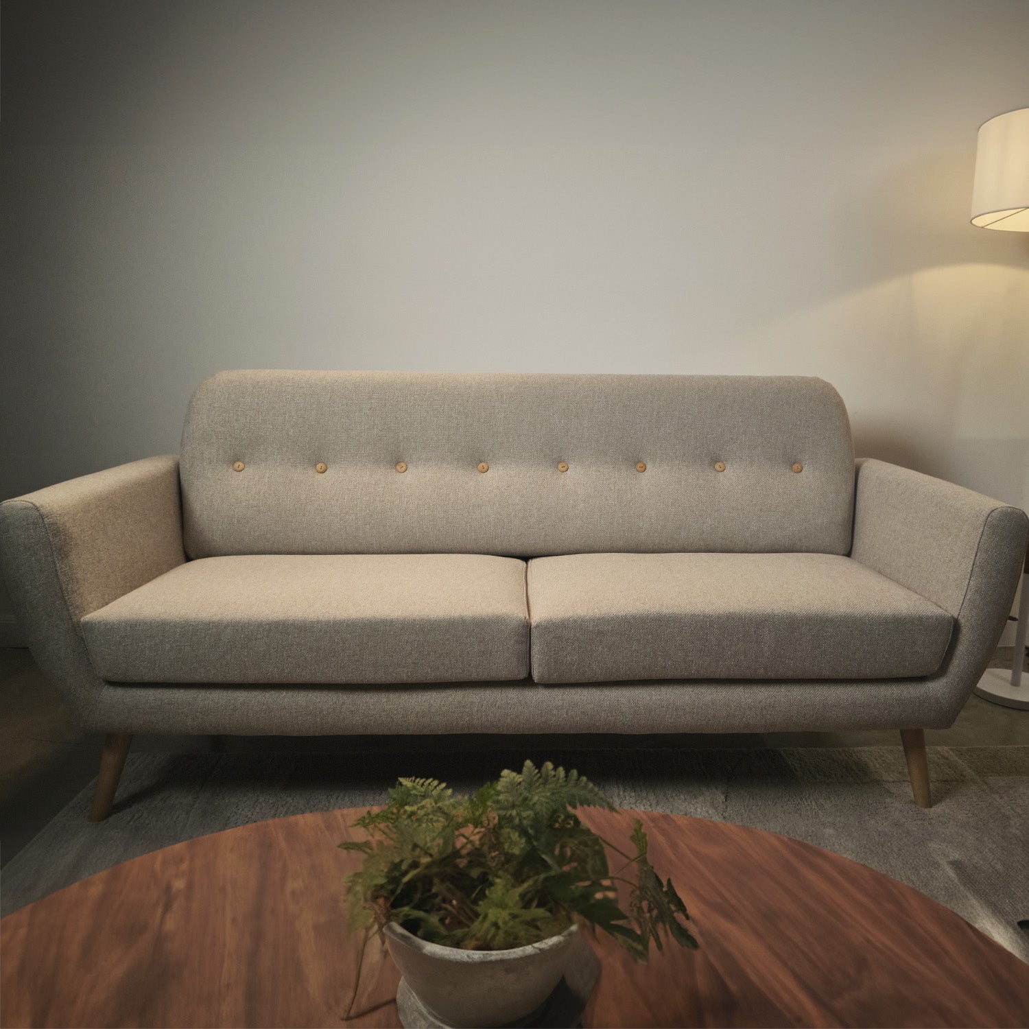 Transforma tu sala con este hermoso sofá de 3 plazas, ideal para quienes buscan estilo, comodidad y versatilidad en un solo mueble. Su diseño en tonalidades neutras lo convierten en la opción perfecta para complementar cualquier tipo de decoración. Disfruta de tu nuevo centro de reuniones, comparte hermosos momentos y relájate al 100% en la calidez de tu hogar.