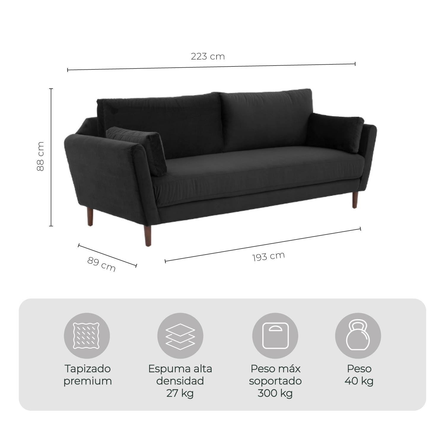 - Medidas: 223 cm largo x 88 cm alto x 89 cm profundidad