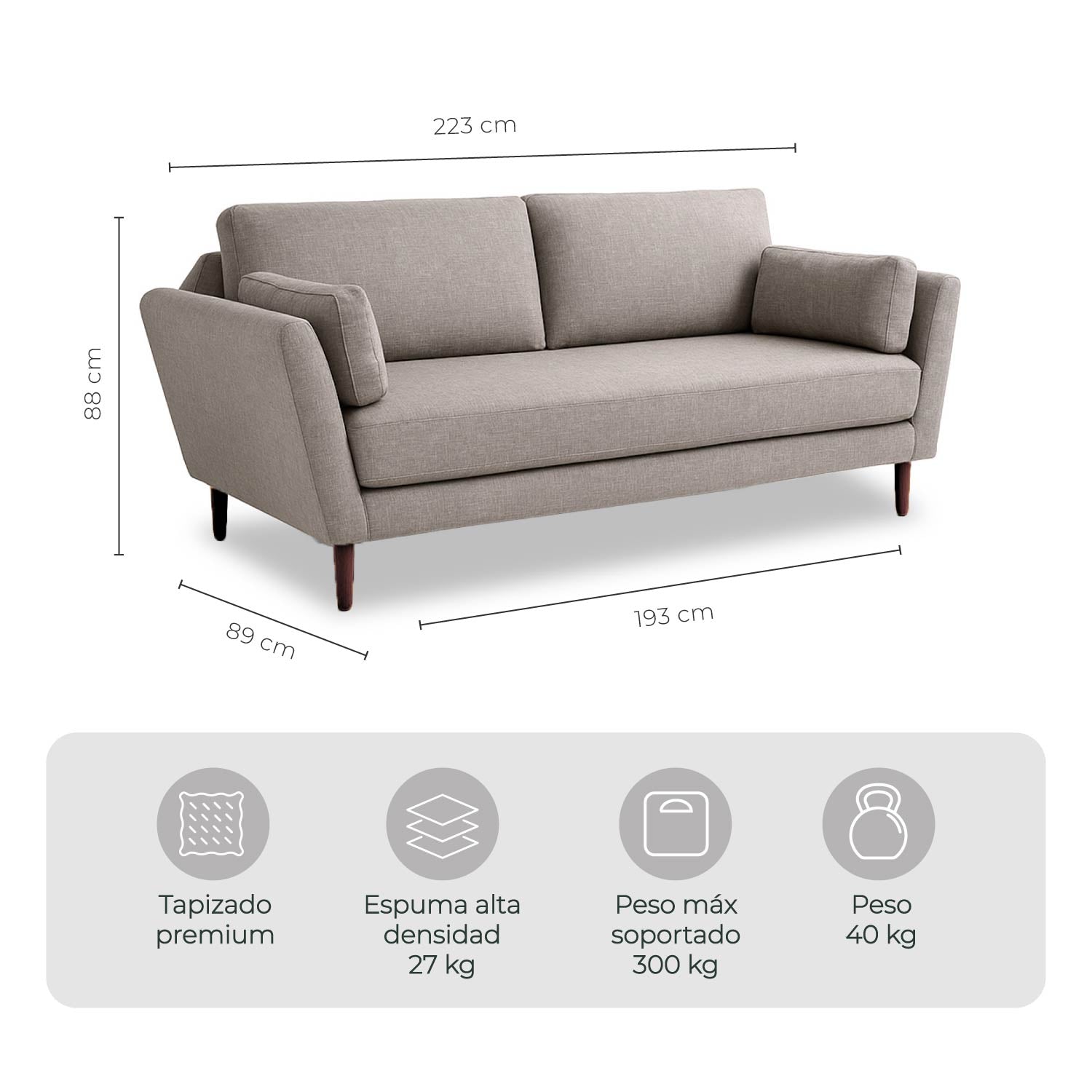 - Medidas: 223 cm largo x 88 cm alto x 89 cm profundidad