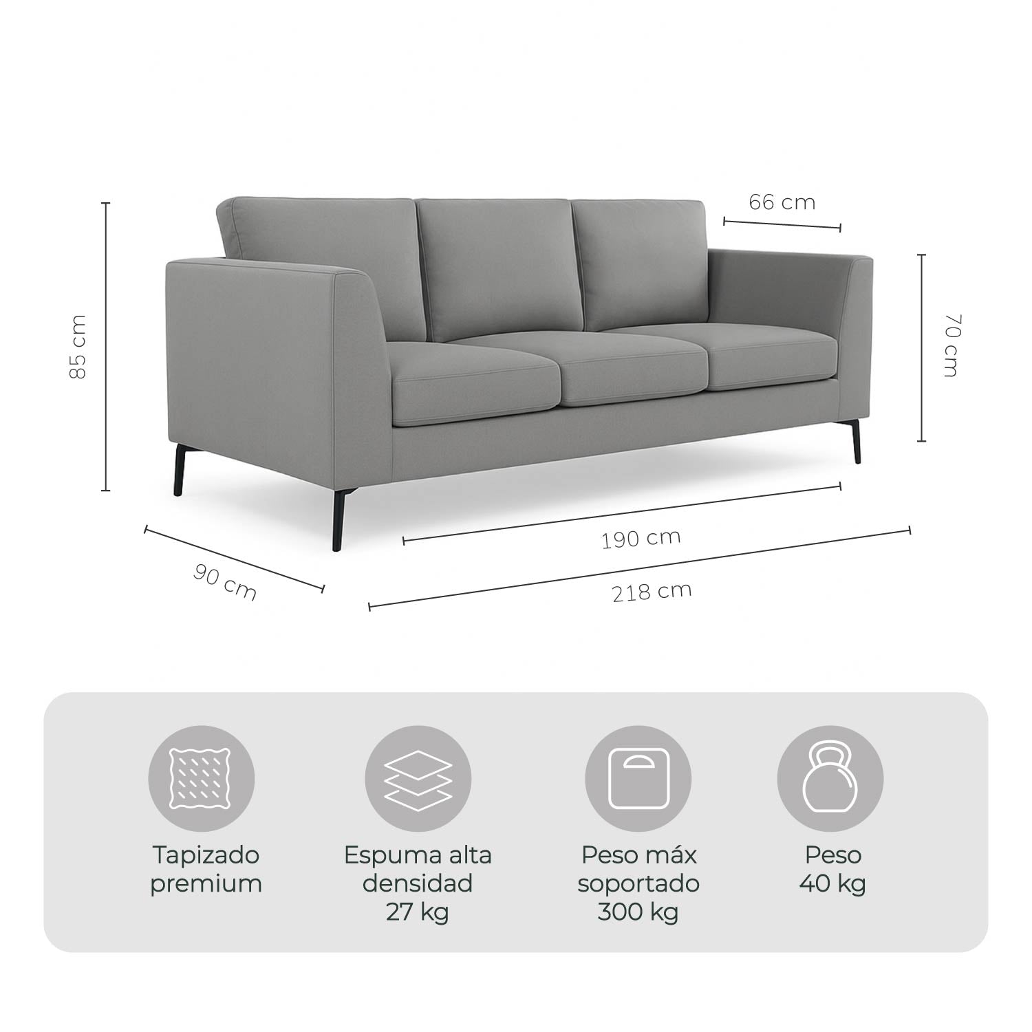 - Medidas: 218 cm largo x 85 cm alto x 90 cm profundidad