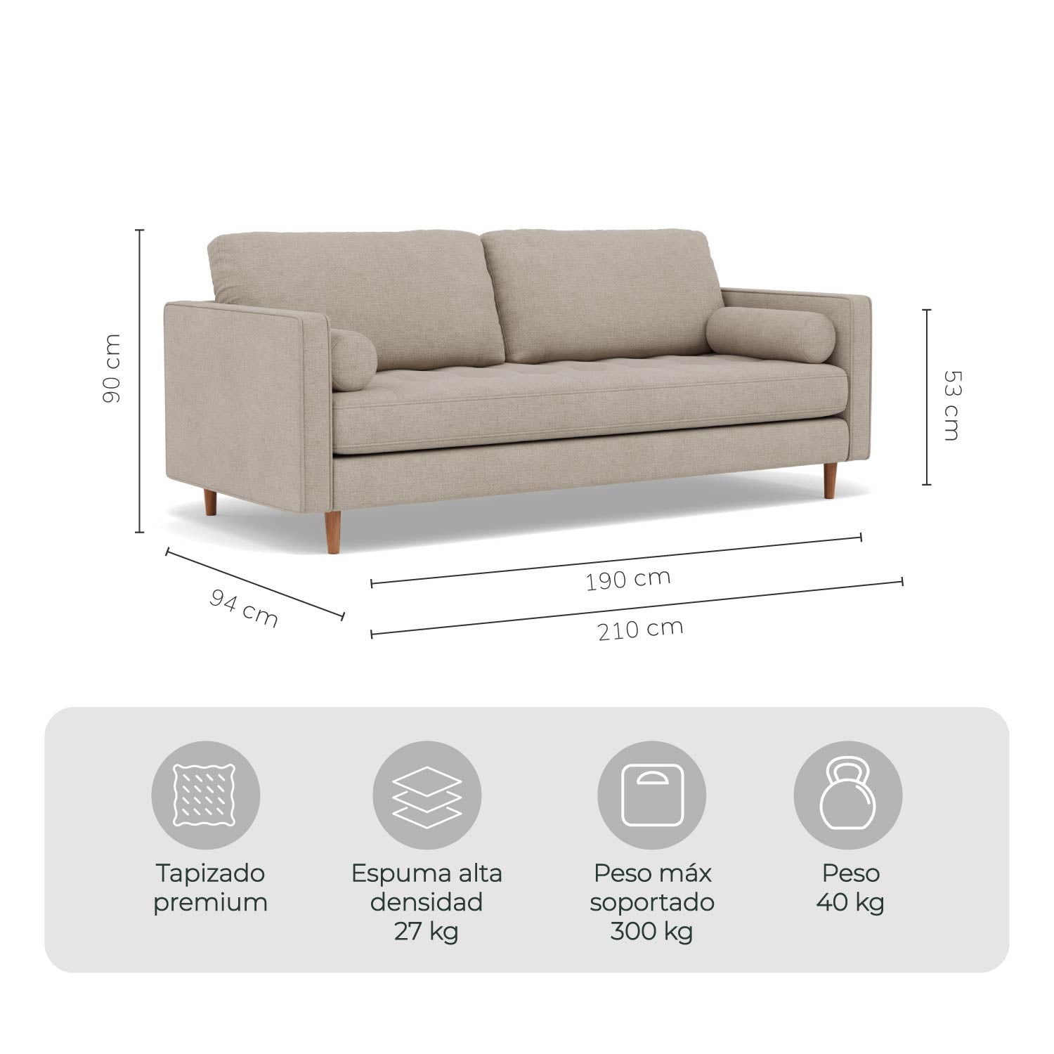 Transforma tu sala con este hermoso sofá de 3 plazas, ideal para quienes buscan estilo, comodidad y versatilidad en un solo mueble. Su diseño en tonalidades neutras lo convierten en la opción perfecta para complementar cualquier tipo de decoración. Disfruta de tu nuevo centro de reuniones, comparte hermosos momentos y relájate al 100% en la calidez de tu hogar.