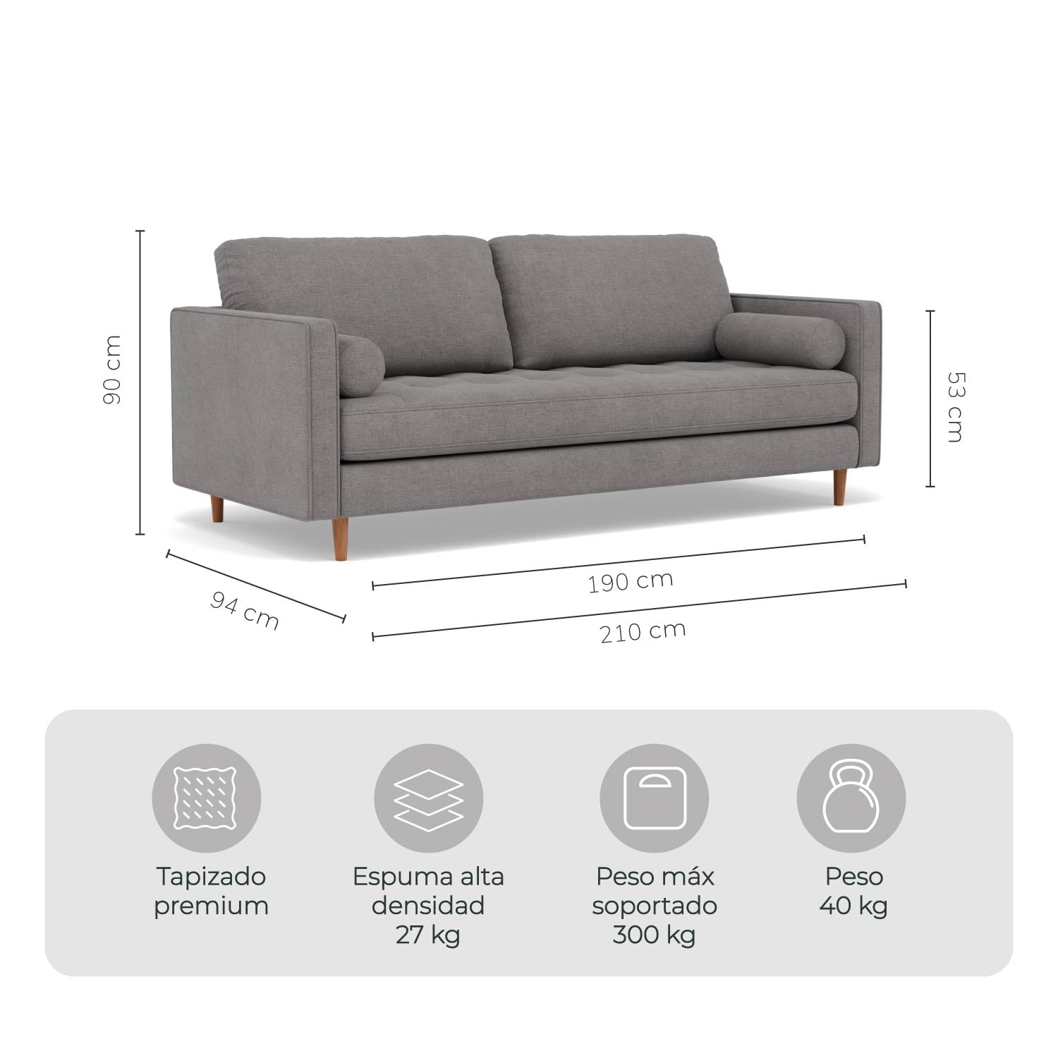 - Medidas: 210 cm largo x 90 cm alto x 94 cm profundidad