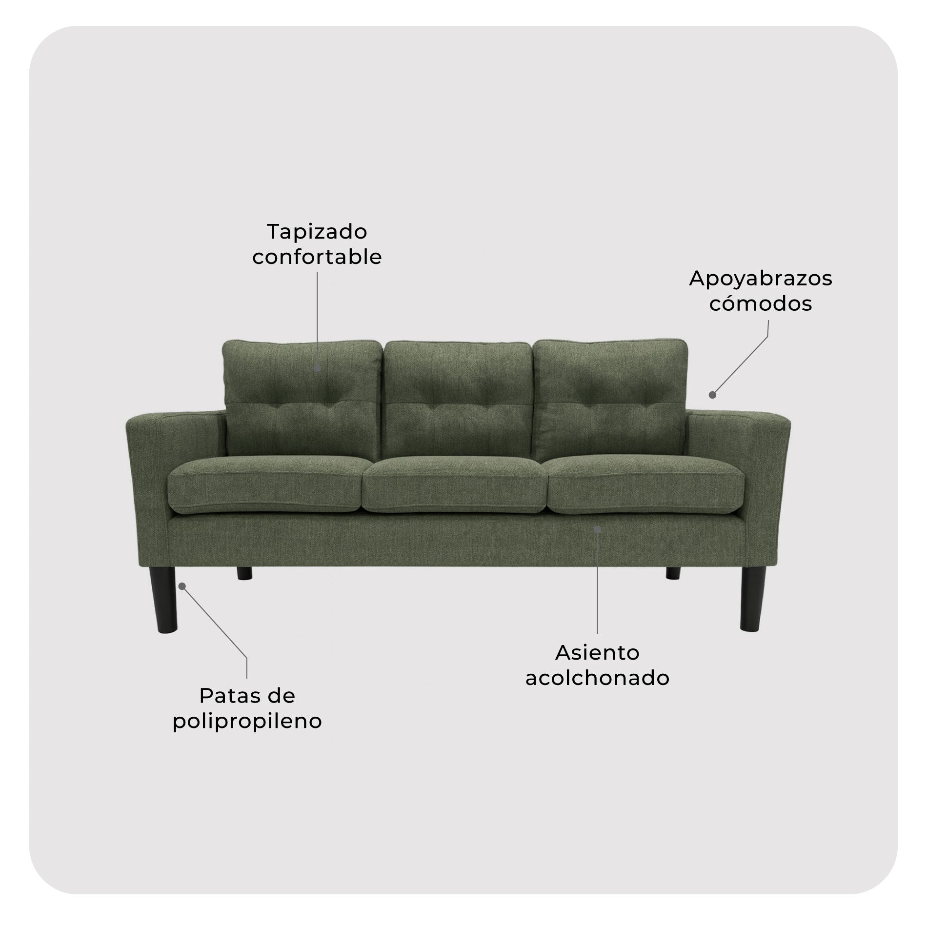 - Sofá de 3 plazas, ideal para disfrutar momentos de relax en tu hogar